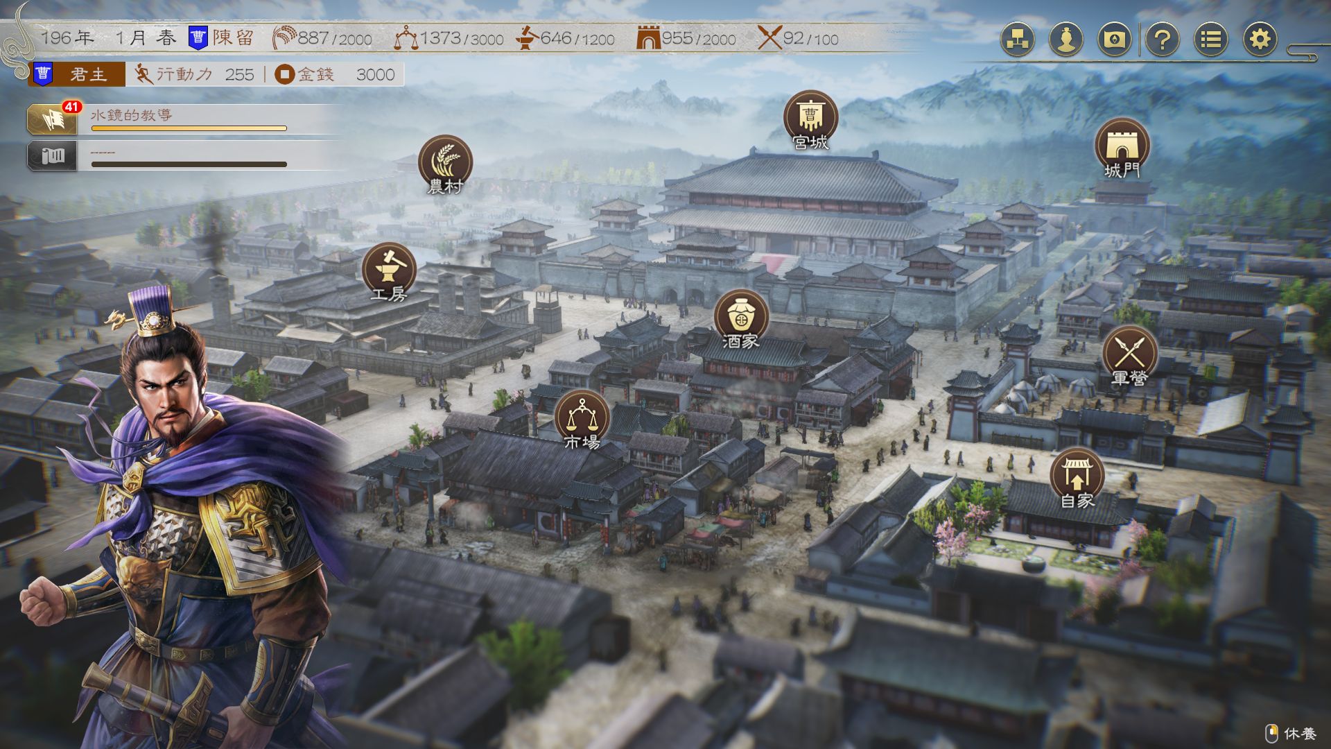 都市畫面也利用細緻的 2D 表現及 3D 景深營造出城市的氣氛,並藉此展現出三國時代多元的地方特色及四季所帶來的城市特徵變化,從中帶給玩家彷彿畫面中的世界真實靈動存在的沉浸感及臨場感。