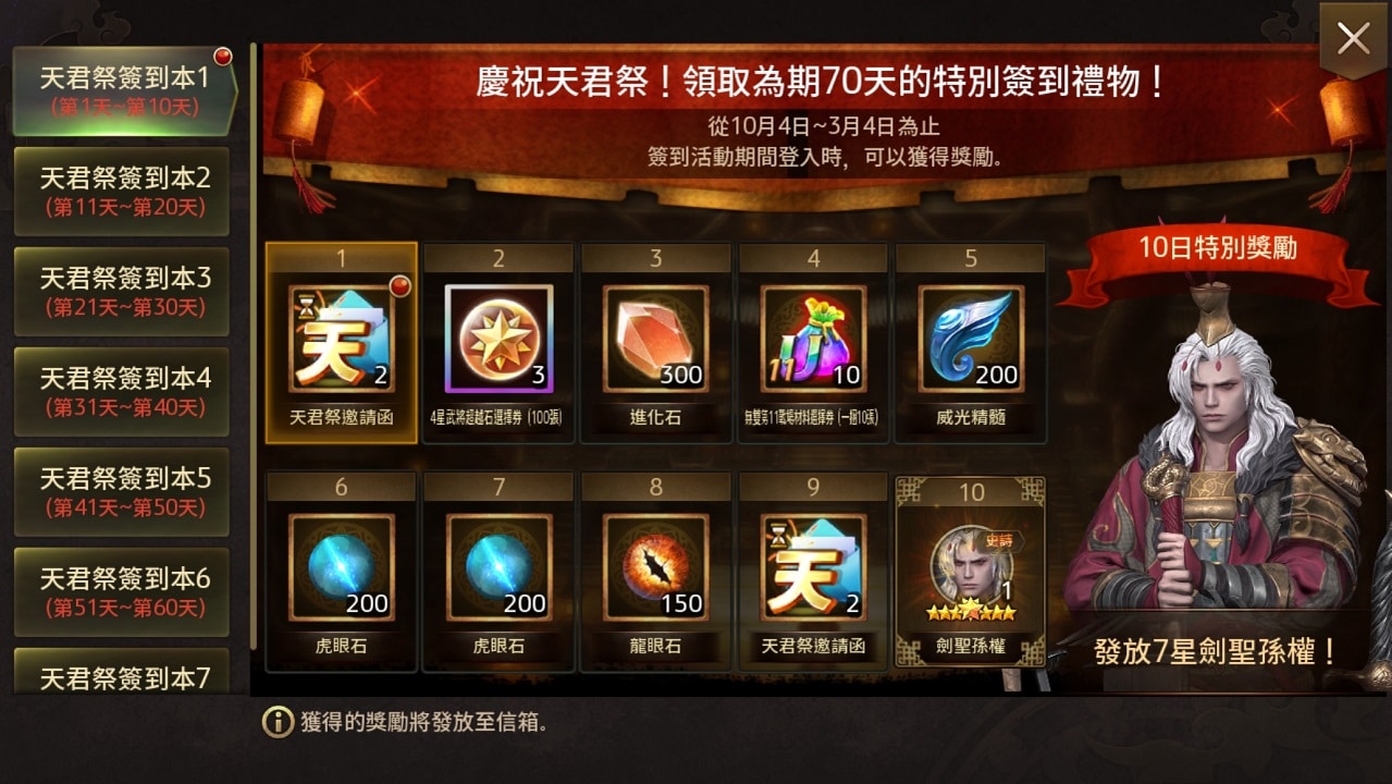 除此之外,還將開啟「天君祭特別抽取」,透過活動期間所獲得的「天君祭邀請函」道具即可免費進行,抽取時可選擇武將並增加登庸機率,讓玩家們在慶典活動中都可以獲得心儀武將。