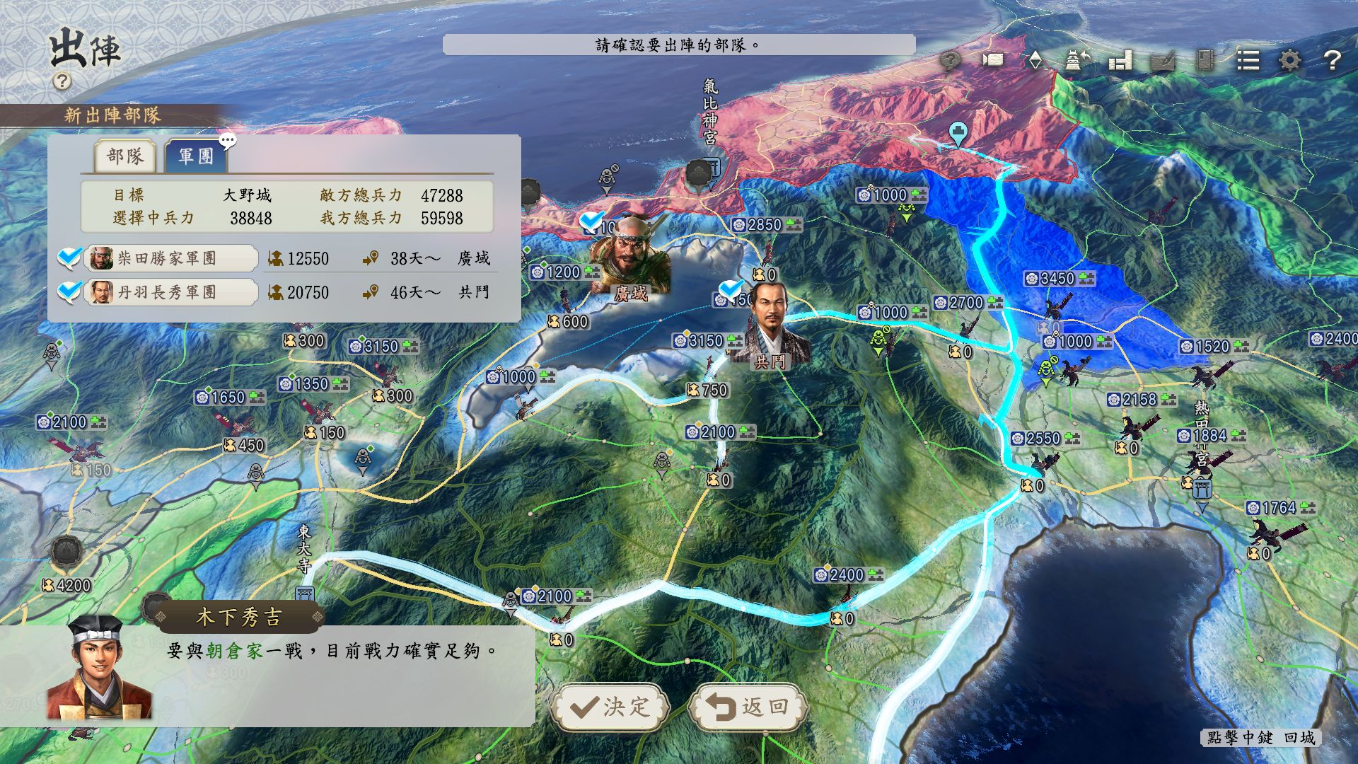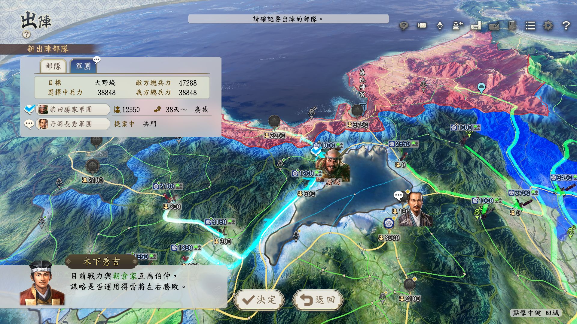 另一方面,設定成防衛據點的城因為需要準備攻城戰,出陣能力會相對下降。在戰線最前端,哪裡要防守或是要從哪邊進攻,將考驗仰賴玩家的觀察力及戰略能力。