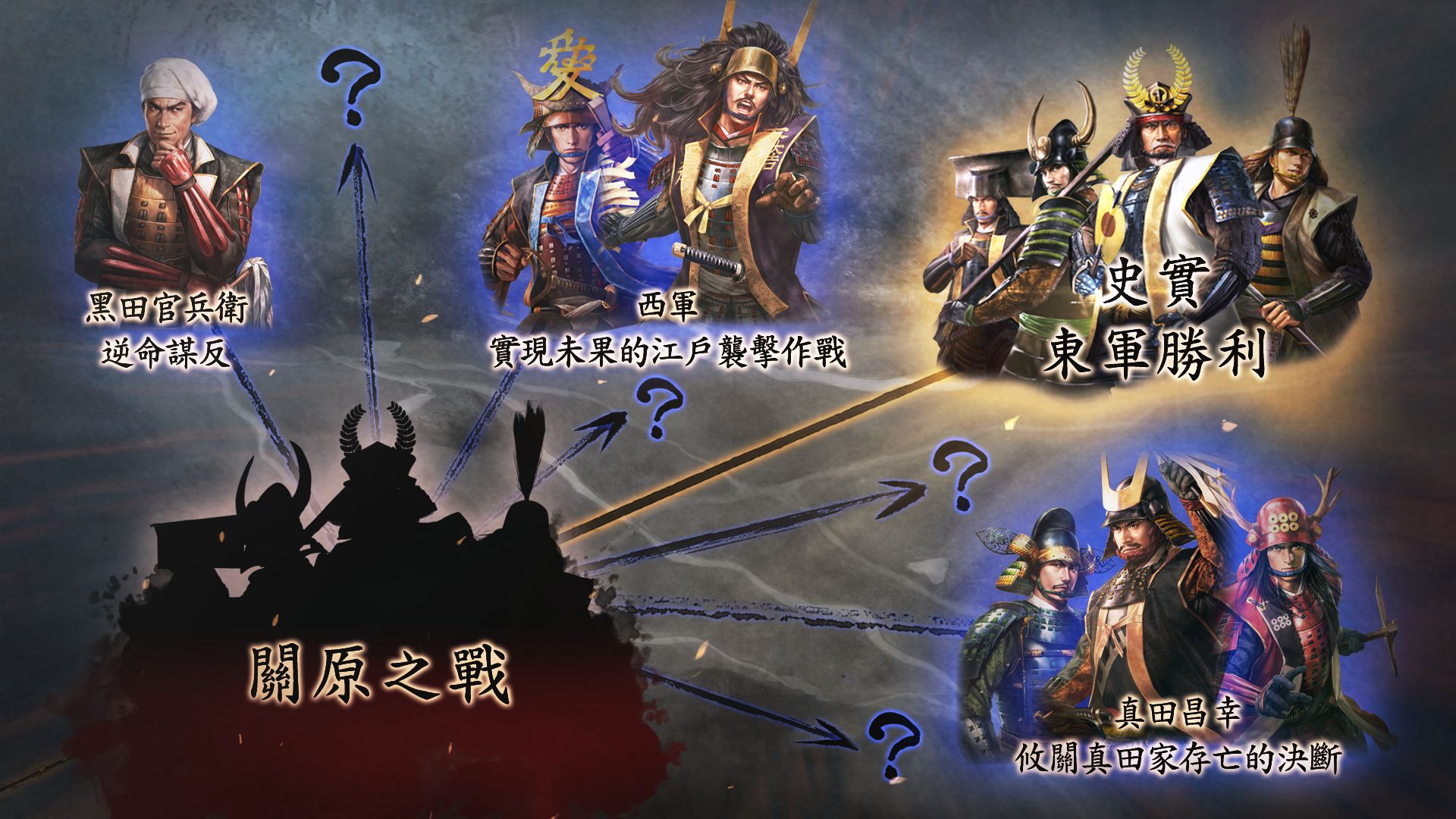 本作還採用了依據最新研究的「西軍之實現未果的江戶襲擊作戰」等 IF 劇情,關原之戰本戰的陣容或是戰後的故事發展皆會隨著玩家的選擇發生變化。即便是同個劇情,每次有可能產生不同分岐。