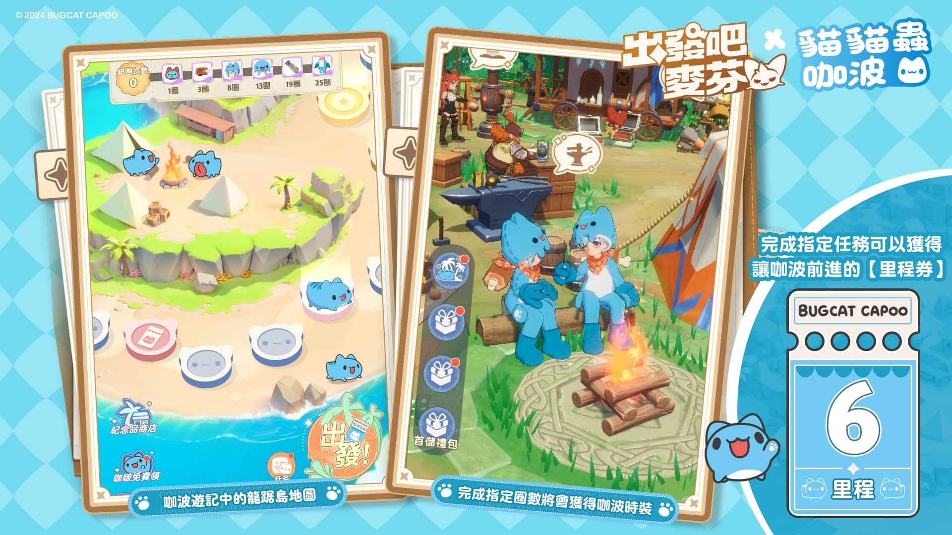 《RO 仙境傳說:天天打波利》製作團隊新作,治癒系冒險放置手遊《出發吧麥芬》正式上線。為慶祝遊戲上市,官方釋出上線宣傳 CG 並同步展開《貓貓蟲咖波》合作活動。冒險家參加活動「咖波遊記」即可免費獲得一系列《貓貓蟲咖波》合作外觀道具。