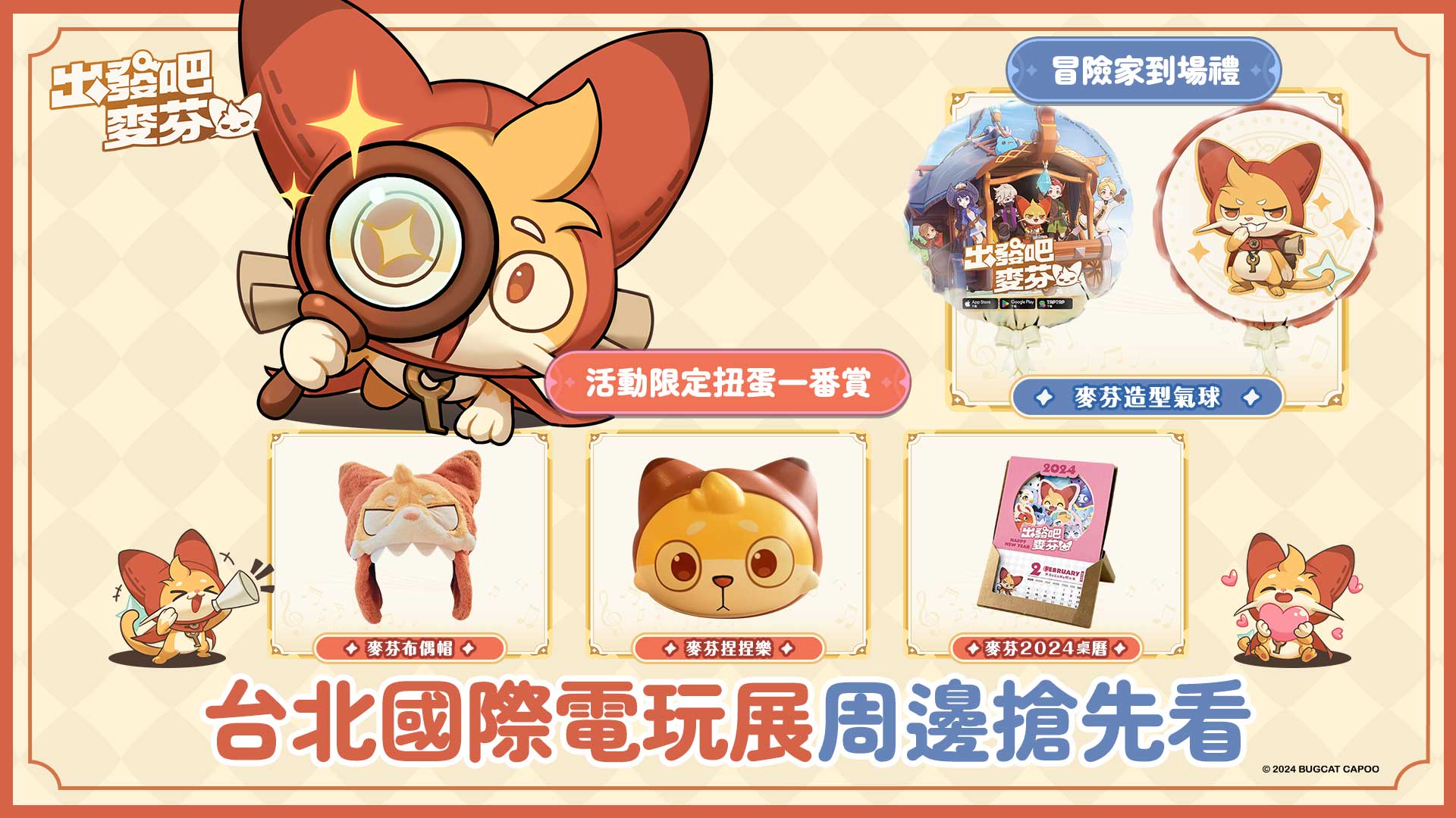 《出發吧麥芬》同時公開了台北國際電玩展現場活動,並搶先釋出「限量麥芬周邊」、「麥芬布偶裝」與「參展 Coser」等資訊,讓想要到場支持《出發吧麥芬》的冒險家們可以一睹為快。