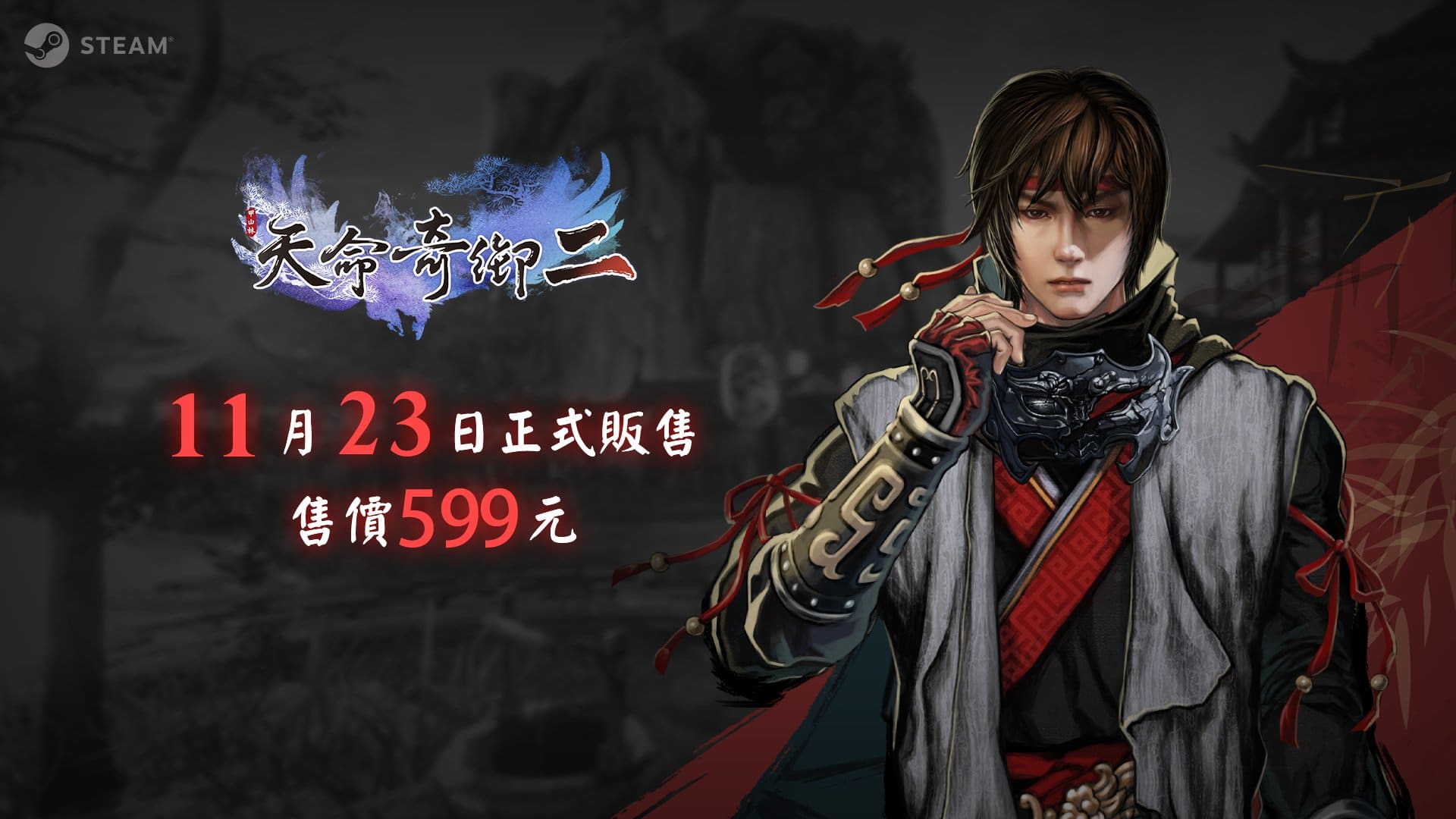 由甲山林娛樂開發的國產武俠單機遊戲《天命奇御二》,開放搶先預購,也將於 2021 年 11 月 23 日在 Steam 平台上正式販售,官方宣布遊戲售價為新台幣 599 元。同時,官方也發布了遊戲第二波正式宣傳影片,片中逞豪俠意氣、品百味江湖,期待與各方少年俠探一起共聚開封,再續天命奇緣。