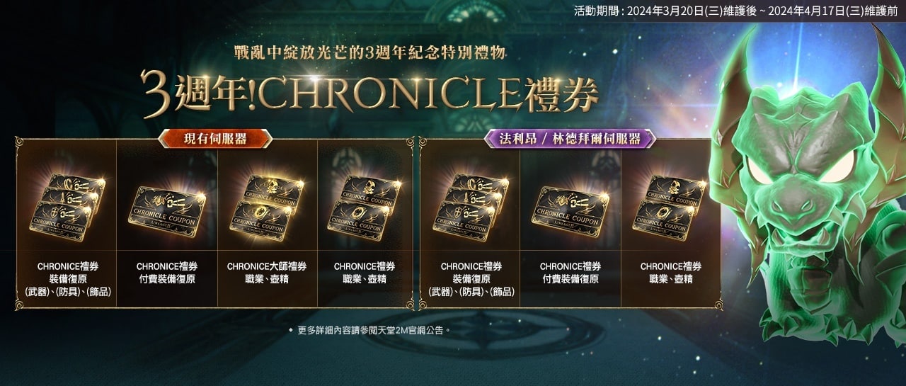 相關報導︰《天堂 2M》預告 3 週年「戰亂的時代,飛龍」改版