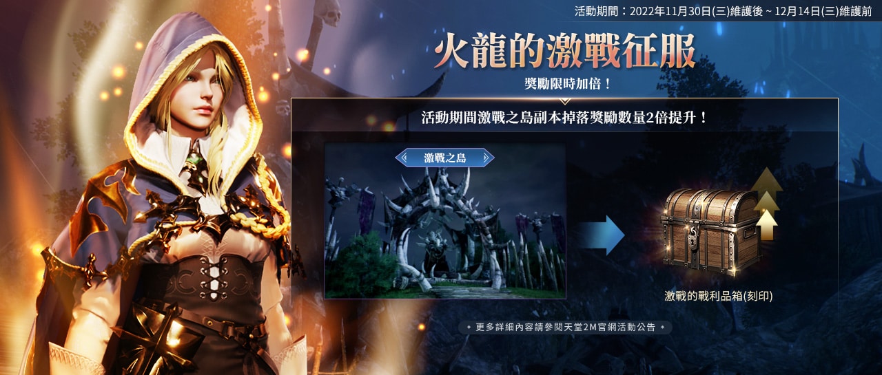 NCSOFT 旗下手遊《天堂 2M》更新,新增亞丁領地新獵場「火龍的痕跡」以及「火龍巢穴」。官方網站也公開了 12 月 14 日改版內容介紹,包含全新「魔法炮」職業、新伺服器「法利昂」、第一個超越合成神話職業等內容,並準備了 TJ’s 特別禮券。《天堂 2M》事前預約活動進行中。