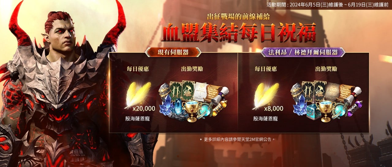 NCSOFT 旗下手遊《天堂 2M》更新,進行了包含法利昂、林德拜爾在內的所有世界二刀流職業更新與職業轉換,各伺服器也分別推出全新內容。更新技能包含「壓迫痛擊、刀刃風暴、殘酷天譴、接近、雙重衝擊、精通斬擊、弱點察知、完美武器」;並新增「最終鳳凰、輕舞翻轉」等 2 種新技能。同時,於 6/12 維護前,期間內可進行二刀流職業轉換。