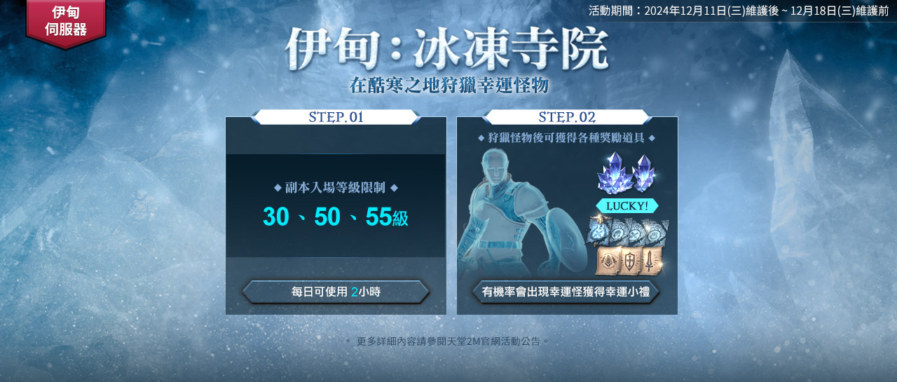 NC 旗下手遊《天堂 2M》更新,原始世界現有伺服器進行格勒西亞翻新;法利昂與林德拜爾伺服器新增「上級滅絕香爐」;保值世界伊甸伺服器則開放「伺服器入侵戰」。所有世界將於 12 月 13 日登場「法利昂逆襲」活動。