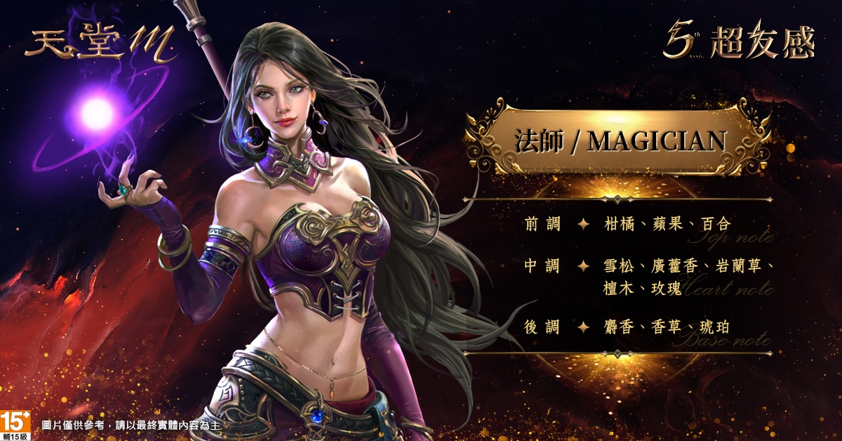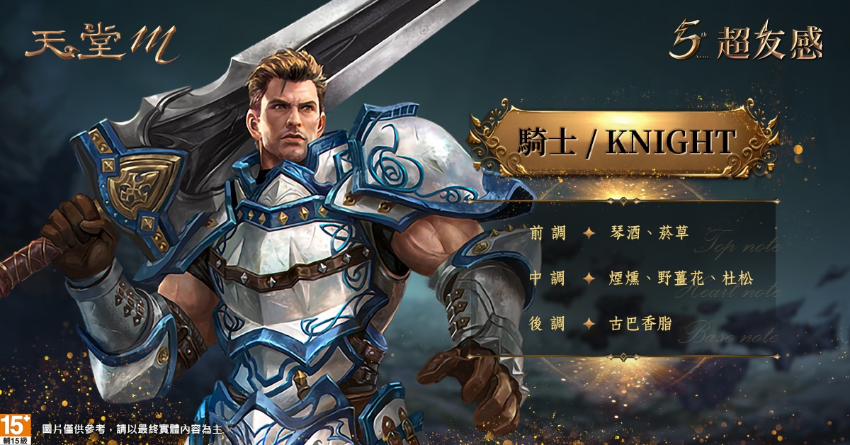 遊戲橘子代理韓國遊戲廠 NCSOFT 開發的手遊《天堂 M》迎接遊戲開服五週年,特別與香氛品牌《EYECANDLE》合作,以玩家角度出發,打造限量「五週年超友感」贈禮,攜手瑞士百年香水品牌《LUZI》以及法國調香師經過調香團隊數十次會議討論,為《天堂 M》四大職業:王族、騎士、法師、妖精,獨家設計四款專屬香水獻給玩家,期望透過嗅覺記憶讓玩家留下與隊友共同打寶、衝等、解副本等屬於《天堂 M》的專屬回憶。