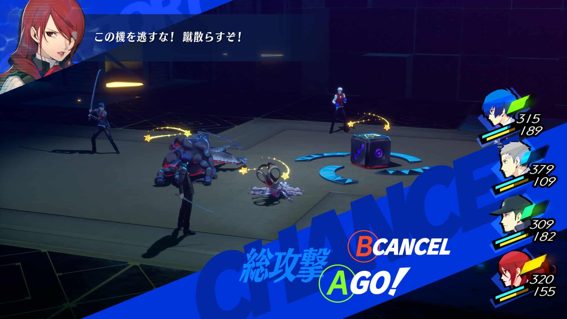 本作具有女神異聞錄系列耳熟能詳的回合制指令戰鬥系統,而且還變得更加強化,攻擊敵人弱點使其倒地後,就能再次進行攻擊。當敵人全部倒地時就能使出「總攻擊」。攻擊敵人弱點並妥善利用新的各種追加要素,讓戰鬥變得對我方更有利。