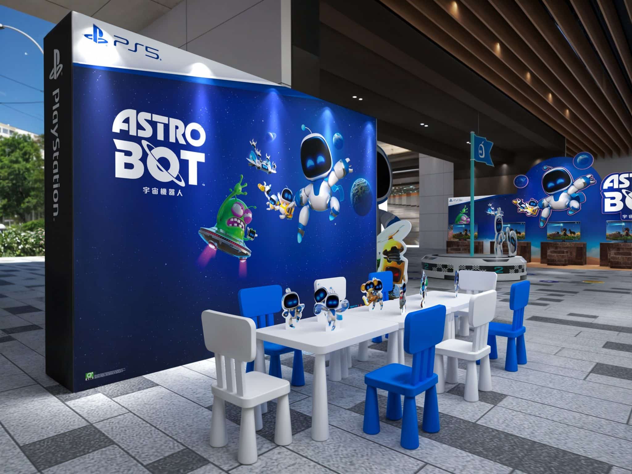 官方同步推出「拯救《宇宙機器人》任務」號召玩家一同參與,現場試玩體驗《宇宙機器人》遊戲就可以獲得限定貼紙,此外與 6 米高《宇宙機器人》主角拍照並上傳官方臉書粉絲團,及參與並完成「ASTRO BOT 在哪裡」網頁活動指定任務,完成三項任務即可獲得限定夾娃娃挑戰券乙張,現場有機會將 Sony BRAVIA 4K 智慧顯示器、PlayStation 5 主機、DualSense 無線控制器《宇宙機器人》限量版等多項贈禮帶回家,還有「ASTRO BOT 繪圖互動區」,邀請大小朋友們一同畫出超可愛的宇宙機器人。