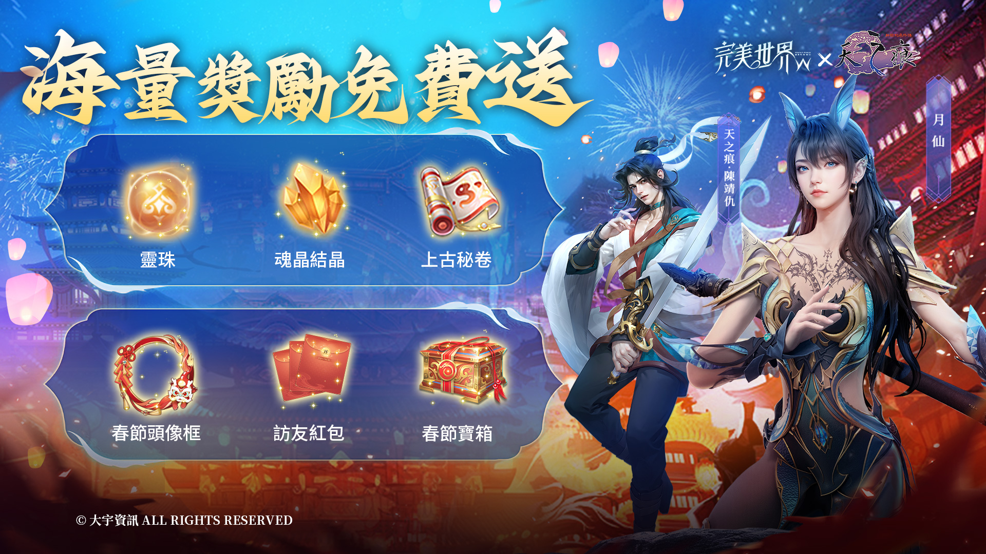 在這次春節系列中,無論新老玩家,只需每日登入遊戲,即可獲得高階乾坤石、附靈寶箱、英魂碎片、靈珠等等資源。其中春節專屬活動道具,訪友紅包還具有雙重收益效果,贈送紅包的玩家可獲得上品鐫刻匣.朔,收到紅包的玩家則可獲得靈珠、上品鐫刻匣.朔、4 級魂石自選袋、乾坤石、200 銀元寶中的一種。