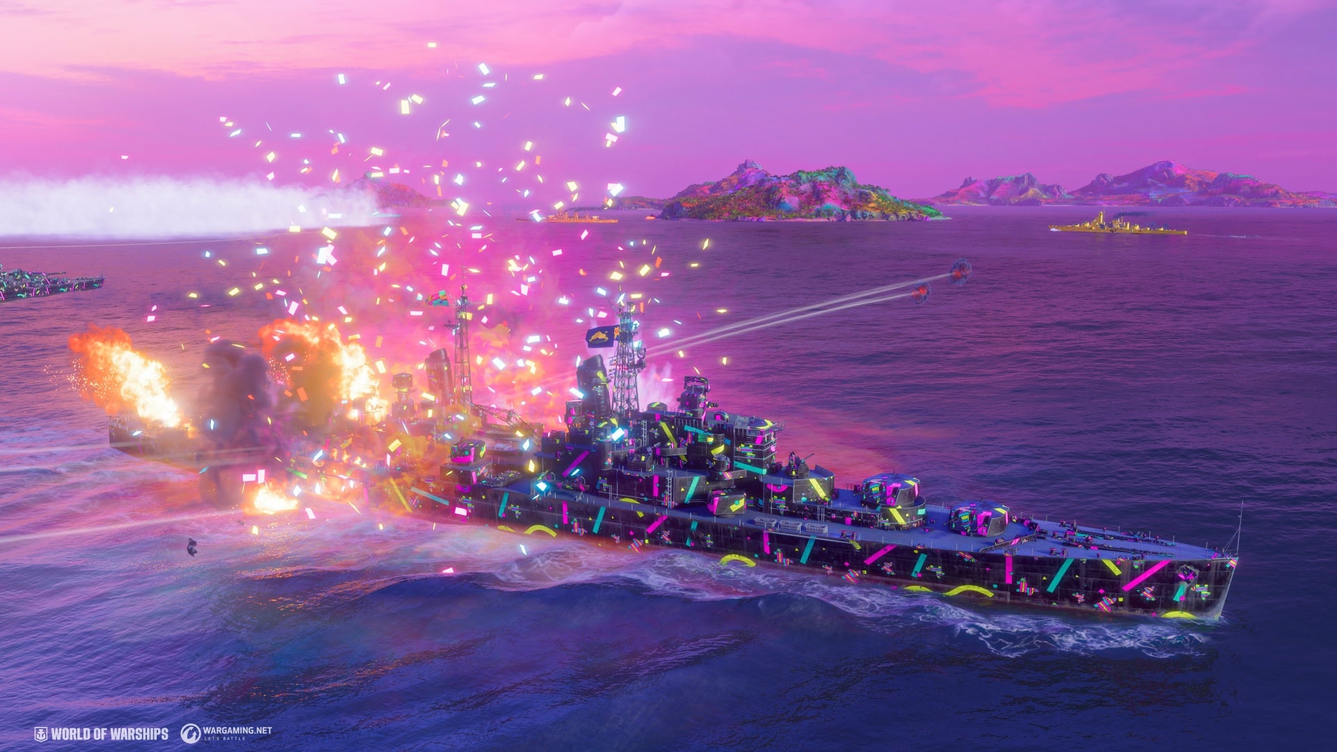 迎接一年一度的愚人節,13.2 版本更新將於三月底推出「皮納塔狩獵」活動,讓玩家可於活動期間狩獵一艘特殊的皮納塔戰艦。兩支隊伍會參與戰鬥,每隊會有 7 名玩家。今年的「皮納塔狩獵」活動會以獨立的戰鬥類型開放,玩家將可使用所有類型的戰艦於精心裝飾的 Colorful Islands 地圖上進行戰鬥。活動期間玩家還可透過完成戰鬥任務獲得皮納塔代幣,並使用皮納塔代幣於軍械庫中兌換獎勵。