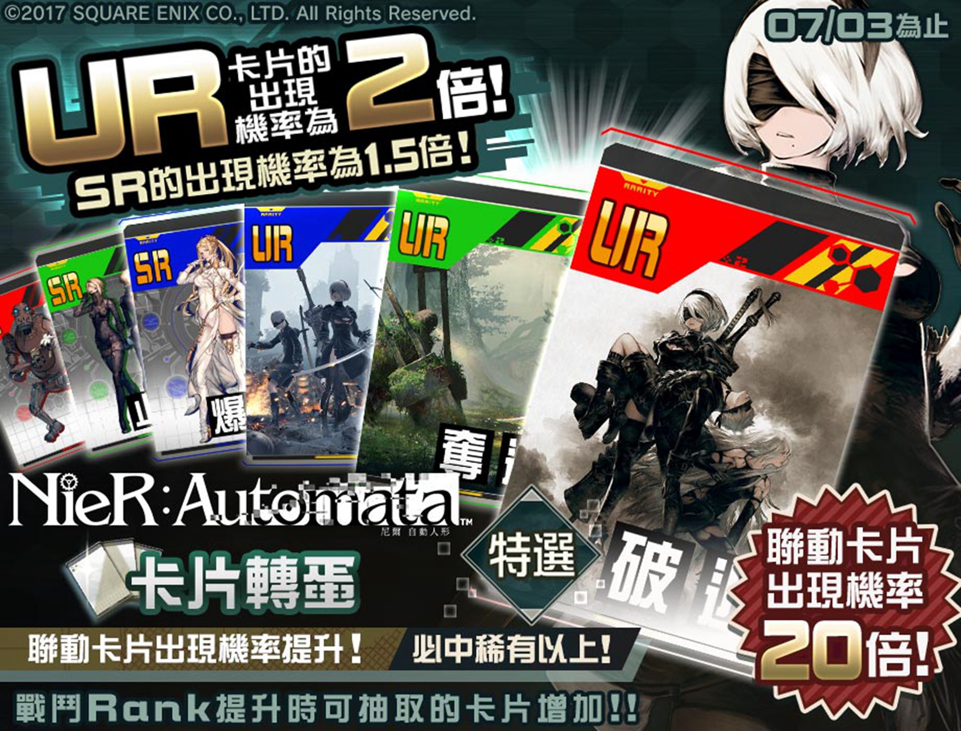 即時對戰遊戲《#空帕斯:陣地攻防戰》即日起到 7 月 17 日開始與《尼爾:自動人形》舉辦期間限定的聯動。新聯動英雄「2B」參戰,期間限定舉辦 UR、SR 出現率提高的特選卡片轉蛋、英雄轉蛋、裝扮轉蛋、登入獎勵等聯動紀念活動。