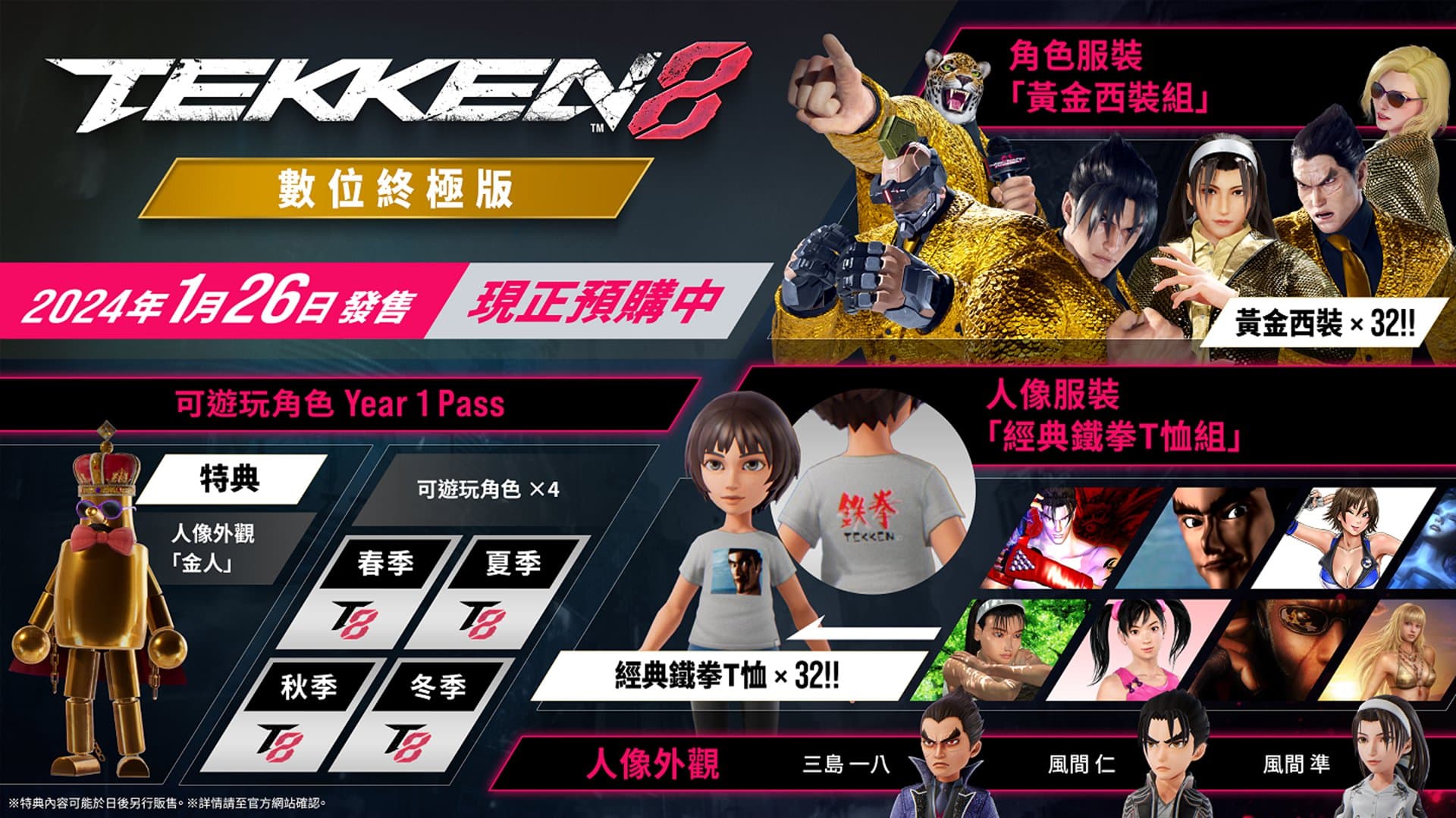 萬代南夢宮娛樂宣布,3D 對戰格鬥遊戲《鐵拳》系列最新作品,PlayStation 5/Xbox Series X|S/STEAM 版《鐵拳 8》即將於 2024 年 1 月 26 日發售。由萬代南夢宮傾力開發的《鐵拳 8》挑戰次世代硬體極限,呈現系列作前所未見的視覺效果。此外,搭載「Aggressive(好鬥)」為概念核心的戰鬥系統,可使出積極猛烈的攻勢和華麗的戰鬥效果。玩家可自即日起前往進行數位版預購。
