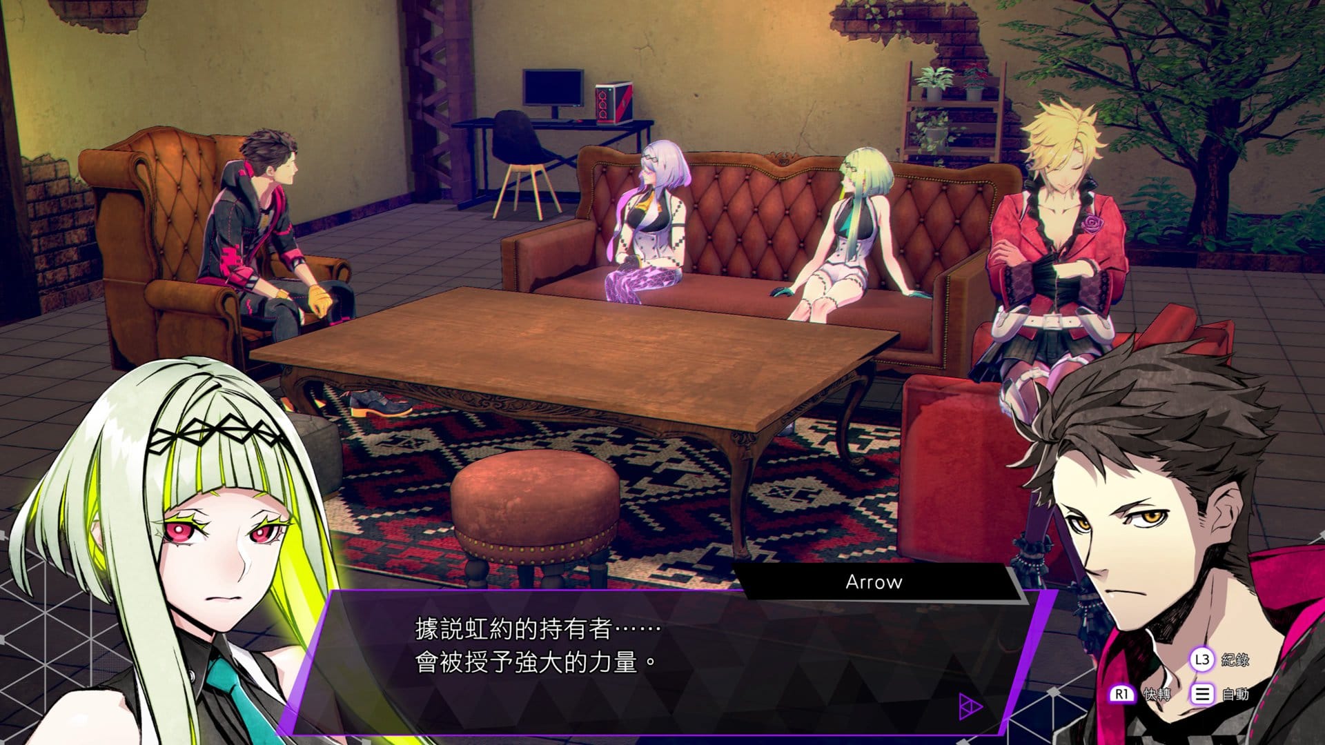 幻影的目的,也就是 Aion 所偵測到的人類毀滅。林檎與菲格、八咫烏的特務 Arrow,再加上 Milady、Saizo,5 人各自出於利害一致的關係,暫時組隊聯手合作。
