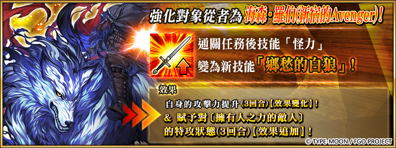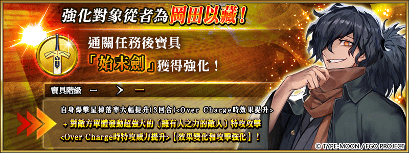 而本次「南溟弓張八犬傳」開放的同時,達.文西工房內的「靈衣縫製」中,將追加 2022 年舉辦的「Fate/Grand Order ~5th Anniversary~」中登場過的「★3(R)岡田以藏」的靈衣「的確好看的羽織袴」開放權獲得任務。此外,「★4(SR)海森.羅伯(新宿的 Avenger)」與「★3(R)岡田以藏」的「從者強化任務」將在迦勒底之門中作為常駐任務追加,過關任務後不僅可以強化對象從者,還可以獲得聖晶石獎勵。