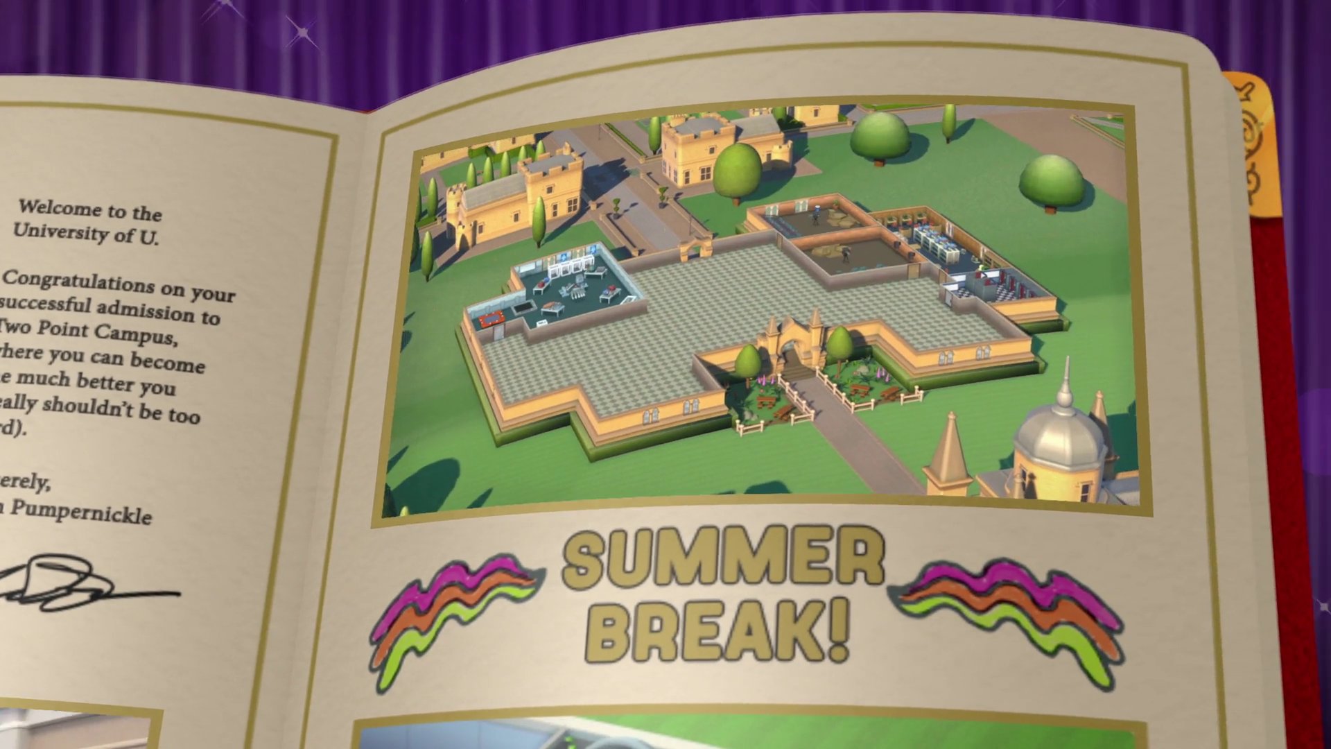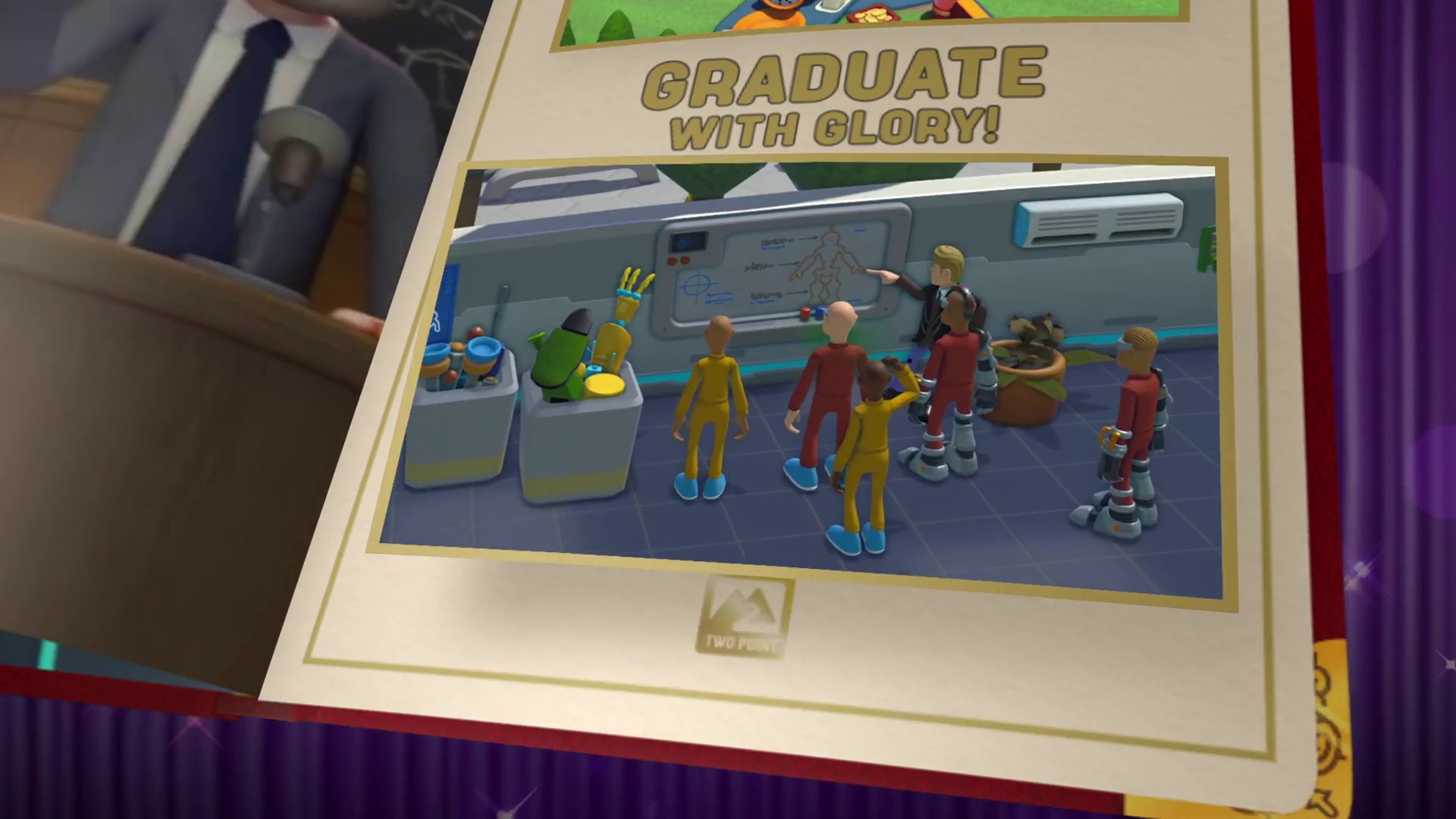 玩《雙點醫院》時,與病人的互動只會持續到病患康復。而在《Two Point Campus》裡,玩家將有整整一學年的時間,與學生建立更深刻的關係。首先,要利用暑假期間自訂校園,選擇要提供哪些瘋狂又美妙的課程,並確認每個細節都符合雙點郡的最高標準。