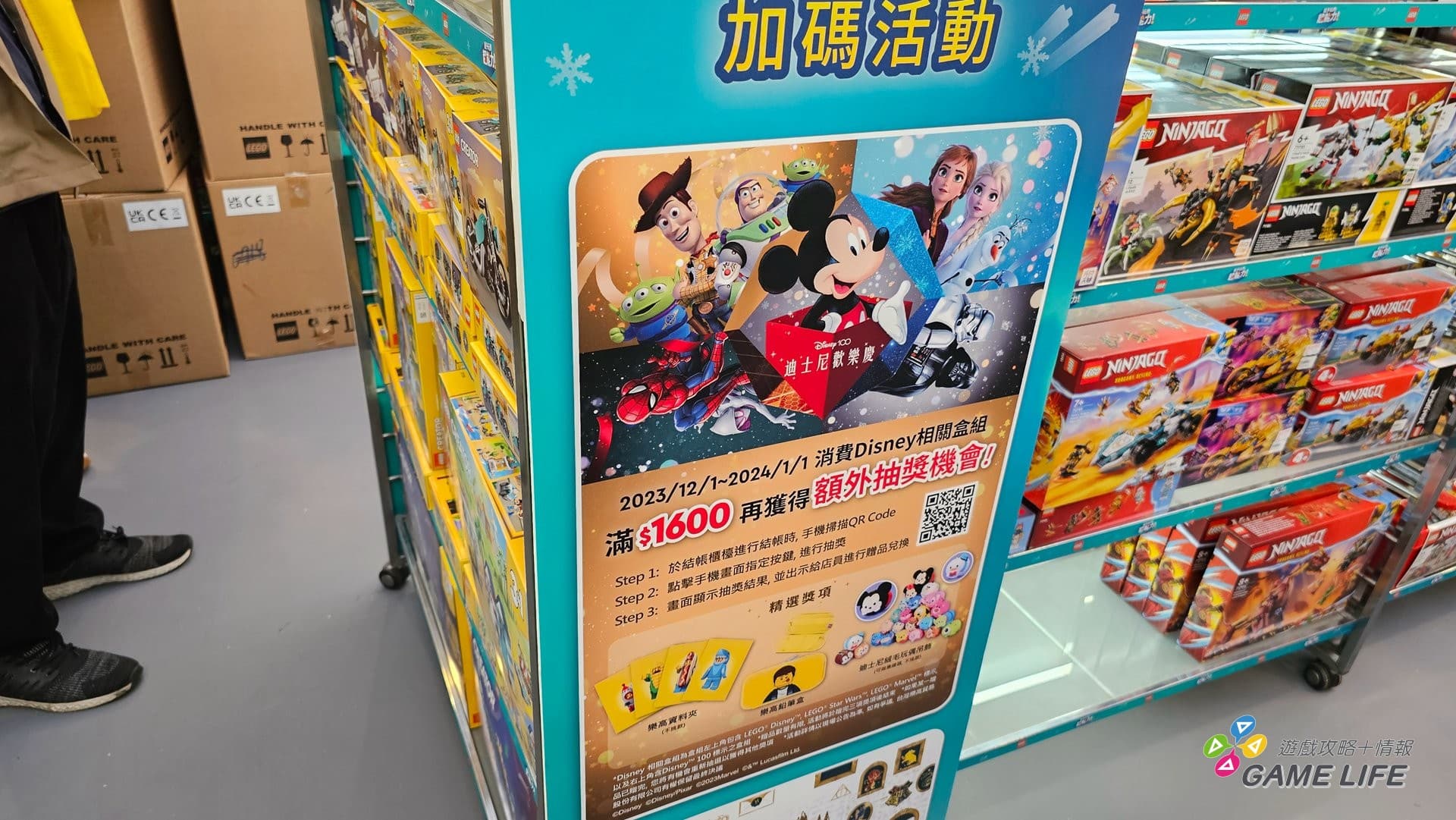 至 2024 年 1 月 1 日於「樂高超能聖誕列車」完成闖關挑戰體驗活動即可獲得樂高積木聖誕吊飾。除此之外,樂高推出多項滿額贈禮同步開跑,至 2024 年 1 月 1 日活動期間,凡購買 LEGO CITY、LEGO Friends、LEGO NINJAGO、LEGO duplo、LEGO Disney、LEGO SPEED系列,滿 999 元即可獲得只送不賣的限量 2024 年樂高桌曆;任意消費滿 1600 元,再獲得「30645 雪人」;滿 2200 元再獲得「聖誕 4 合 1 積木包」;滿 3800 元即可將「樂高聖誕絨毛毯」帶回家。