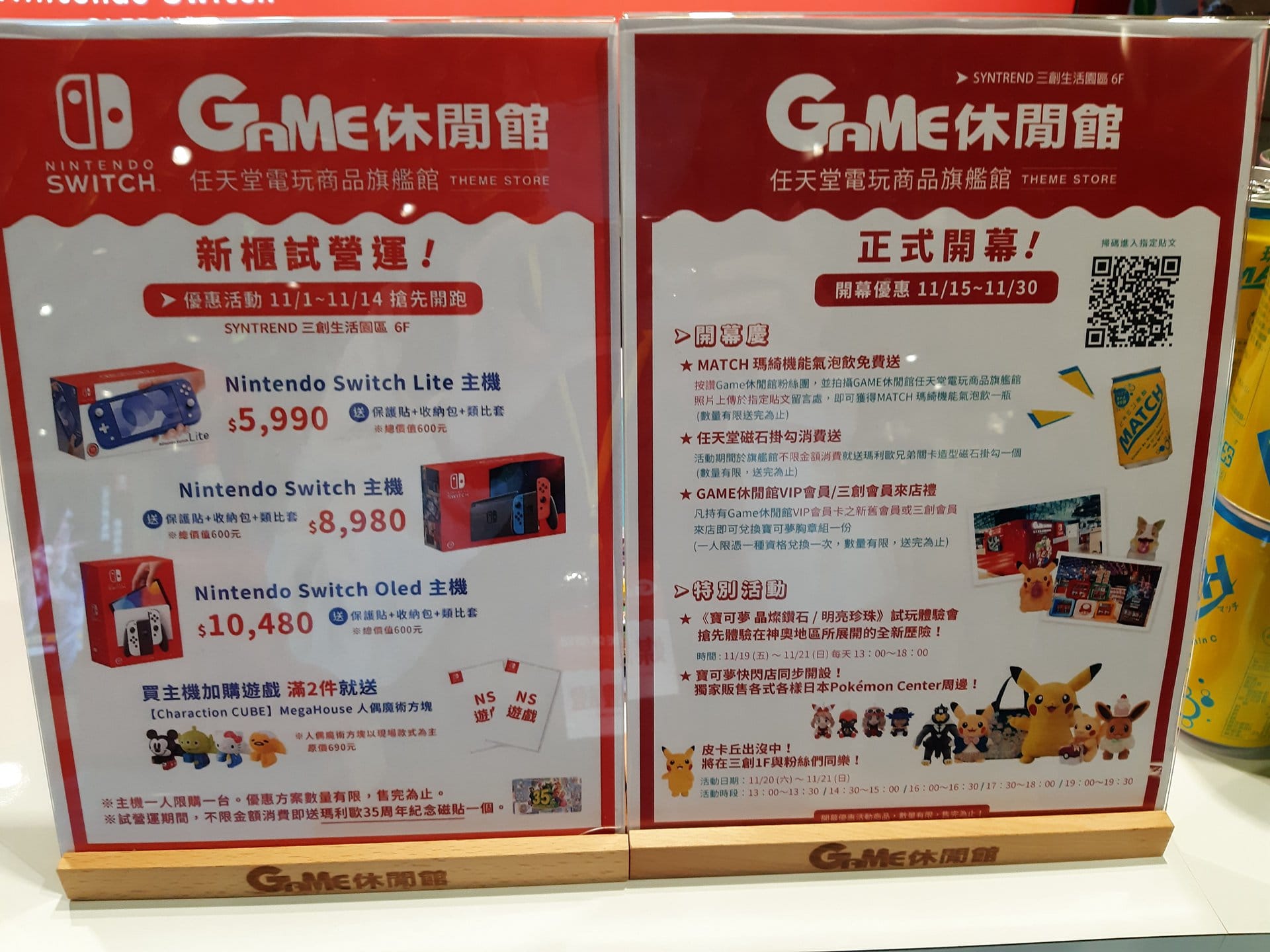 Nintendo Switch 主機雖然遊玩與攜帶方便,但在尋找原廠周邊倒是沒想像中地方便。對玩家來說,原廠貨不好找,用非原廠的周邊又可能造成主機故障,總是令人煩惱。如今,玩家已經不需要為了任天堂周邊難尋而困擾。由任天堂指定進口商傑仕登與台灣知名連鎖電玩專門店品牌「GAME 休閒館」攜手打造的全台首間任天堂電玩商品旗艦館,在 2021 年 11 月 15 日於台北「Syntrend 三創生活園區」開幕。