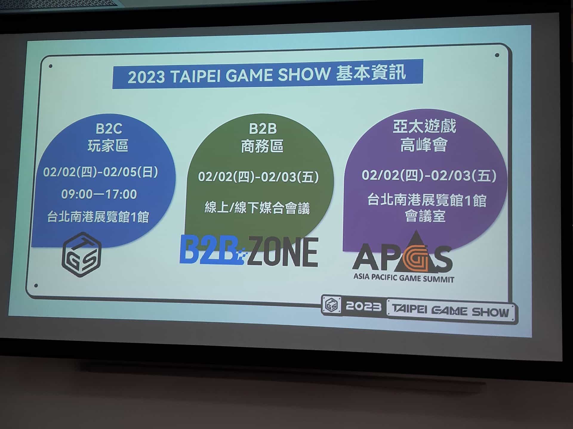 同時作為全世界每年第一個大型電玩活動,台北電玩展官方也預告 2023 台北電玩展會在 2/2 到 2/5 於南港展覽館舉辦。這次依舊分為四大項目進行宣傳,同時主題將定義為「Come in Gameverse」,兼顧到遊戲、元宇宙、NFT 等等概念,希望能像以往電玩展那樣結合國外廠商,帶給玩家全世界第一手的遊戲消息。