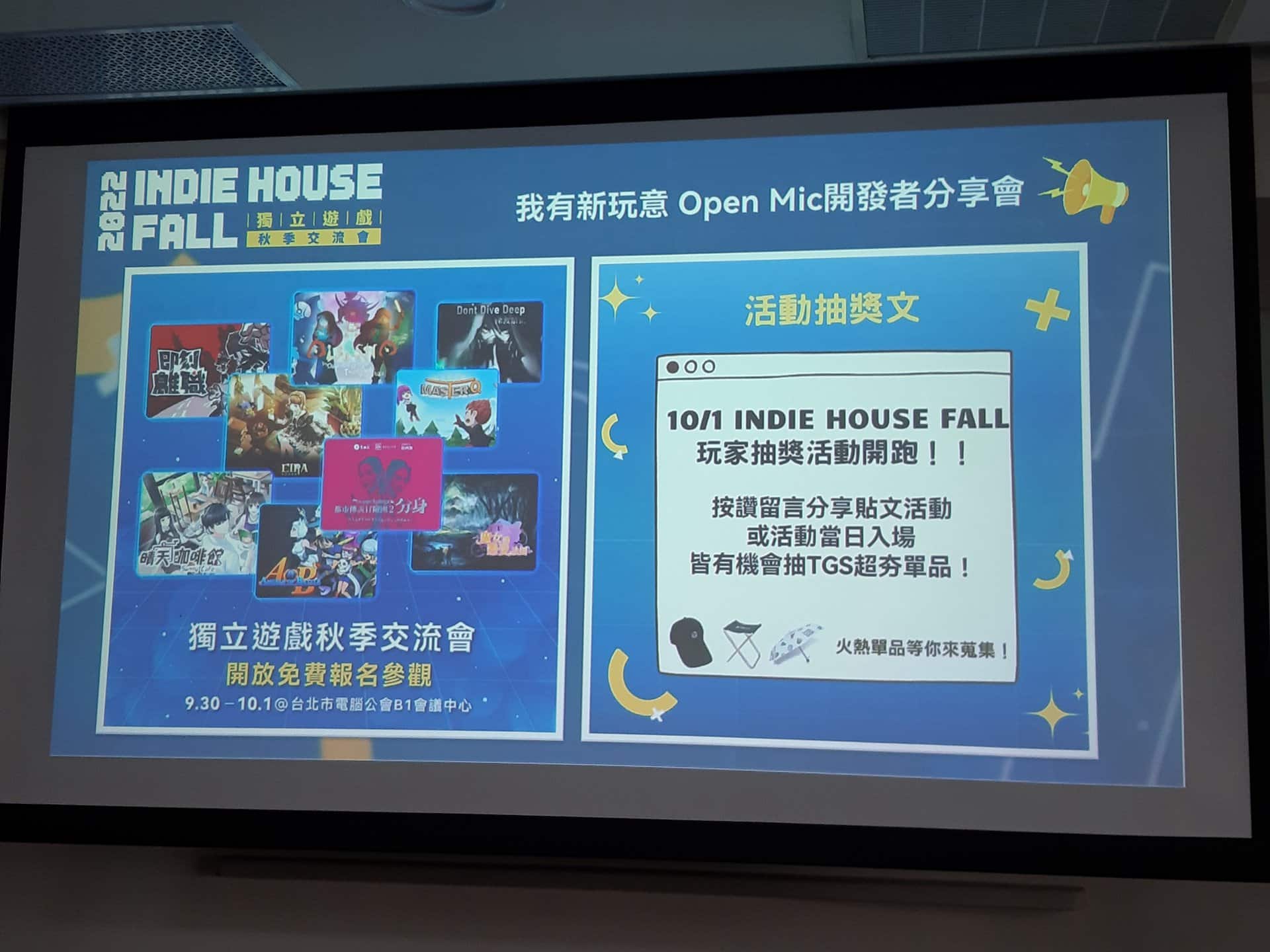 「獨立遊戲秋季交流會」9/30 為商務日,現場業者媒合交流熱絡,玩家日將於 10/1 登場,活動採事前報名免費參觀,現場除了試玩展示外,還有「我有新玩意 Open Mic 分享會」,將邀請現場的獨立遊戲團隊走上舞台,揭露開發者最真實的心聲,此外現場也會抽出好禮,送給到場支持的粉絲,邀請玩家把握最後機會報名。
