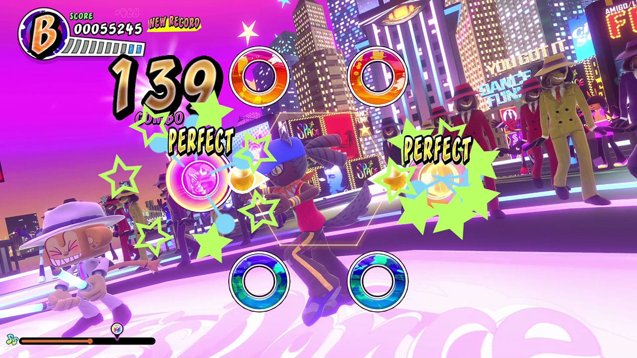 遊戲中收錄了 EDM、流行樂、系列共通的拉丁樂曲等全世界各種類型的 40 首以上樂曲。另外,本作還打造了以祭典為主題的舞台,過去曾經登場於《Samba de Amigo》系列的各種舞台當然也會出現。
