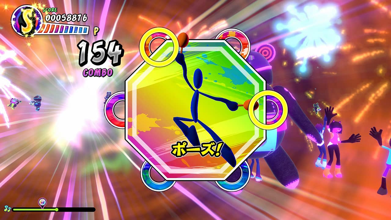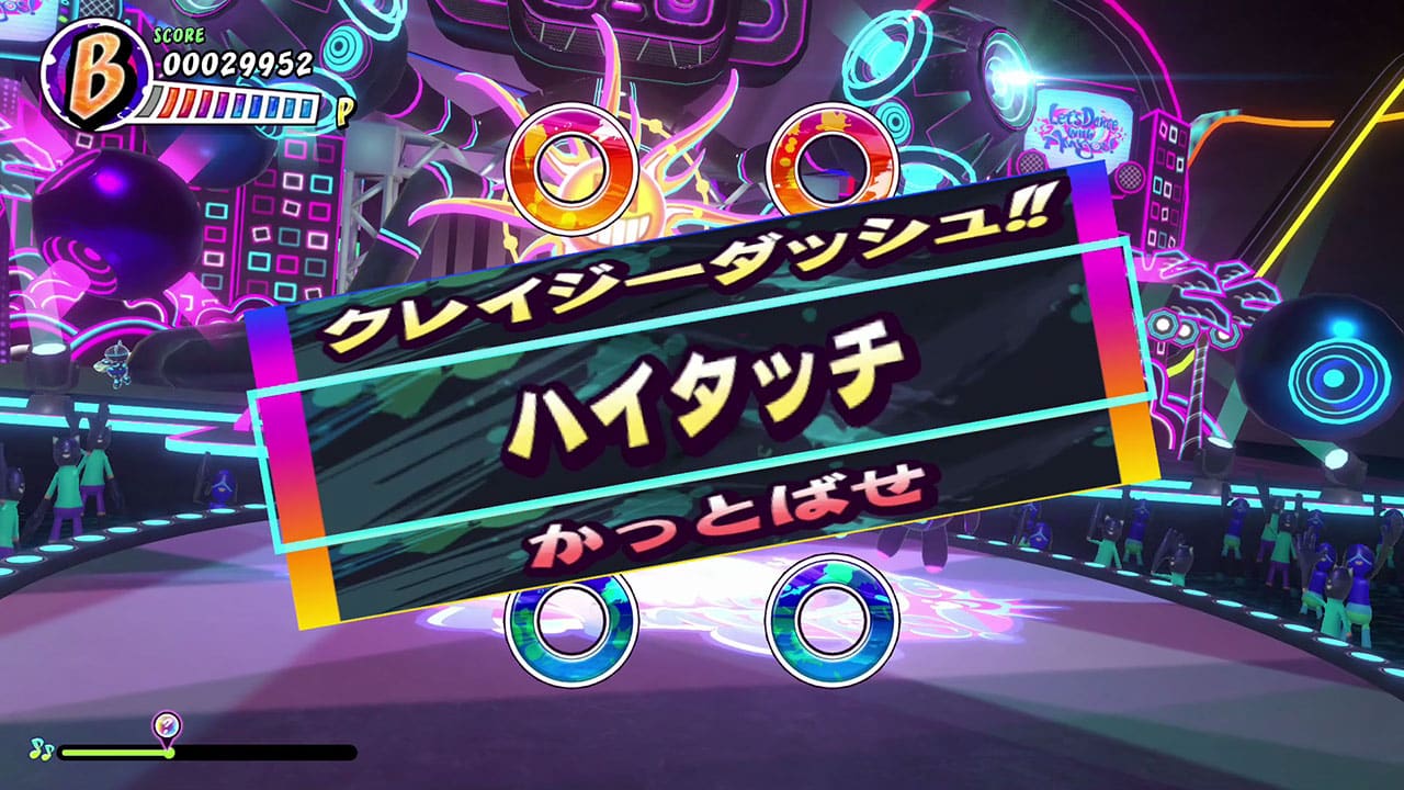 將 Nintendo Switch 的 Joy-Con 當作沙鈴,在跟隨音樂一起飛來的「節奏球」對上框框時搖擺,配合畫面的指示跳舞或擺姿勢,盡情享受人氣歌曲的旋律遊玩。另外,遊戲中也有可能忽然出現「轉盤」。和觀眾擊掌、音樂的速度突然有所變化、根據轉盤數字發生突發事件等,遊戲將會變得更加刺激。