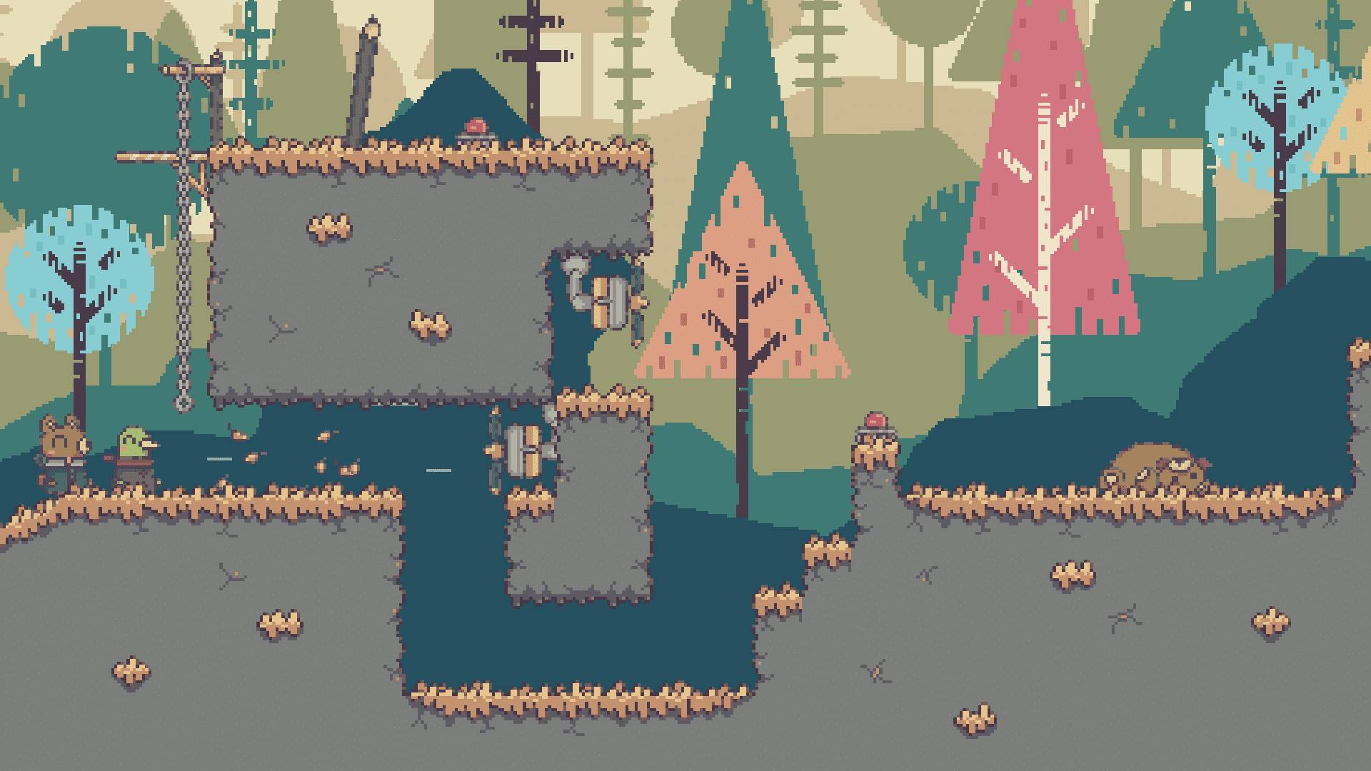 《不同的冬天》以對話溝通遊玩為前提,供使用不同設備的兩人共同遊玩,是一款雙人專用合作解謎冒險遊戲。玩家的畫面會分別呈現出同一場景下截然不同的動物世界及機械世界兩種。需要互相告知對方自己眼下的情況來推進遊戲。
