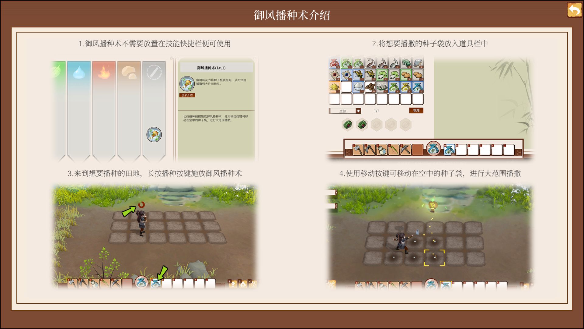 在《一方靈田》遊戲中,玩家將來到因天災而瀕臨毀滅歸雲派,扮演初入門派的弟子,為重建歸雲派而與各位門派友人共同努力。玩家需要從零開始耕耘田地,結識並招募更多的門派友人,深入靈山秘境尋找天材地寶,在日復一日間修煉成長,最終探索歸雲派遭遇災難的真相。