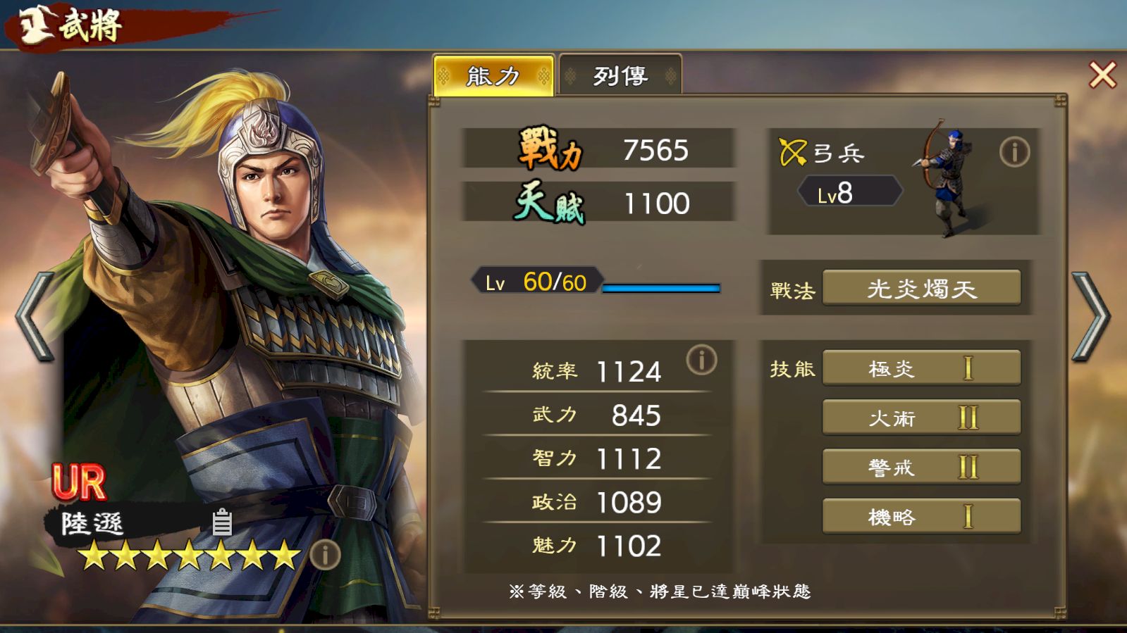 ⚫ 陸遜的技能【極炎】可以使部隊受到的火屬性傷害減少。攻城戰時在攻擊,防禦兩方面都有好效果。