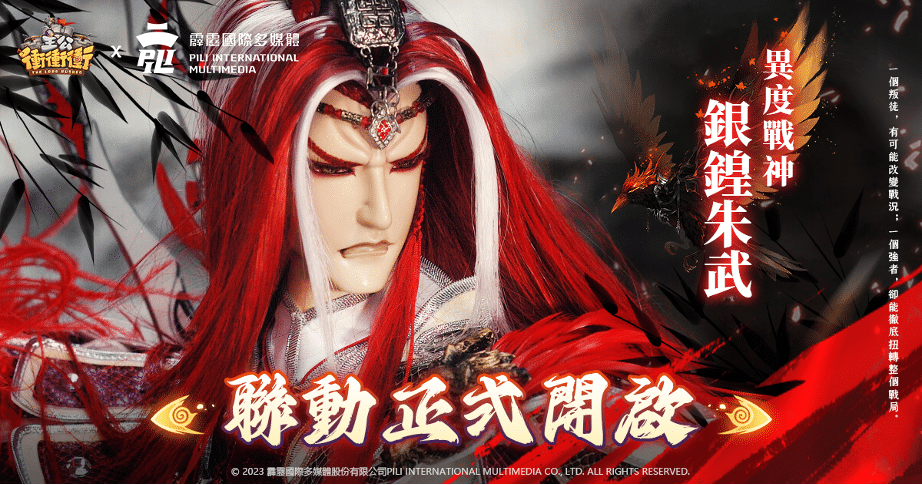 除了素還真,還有另外一隻布袋戲角色加入,那就是銀鍠朱武。異度魔界傳說中的戰神,英武驍勇,曾以赦天逆乾坤保住鬼族之地,但卻也隨斷層墜落而長眠,後為九禍以殘餘的魔源喚醒。復活後的朱武因厭倦爭鬥而自願放棄王者身份,化身朱聞蒼日遊歷中原,結交空谷殘聲,但終究別無選擇地在伏嬰師的策劃與九禍的犧牲之下,重掌魔界大權,擔下征戰中原之重任。更為讓愛妻九禍復活,不惜開啟萬血邪錄,牽扯出神州支柱之秘,引發一波中原浩劫。