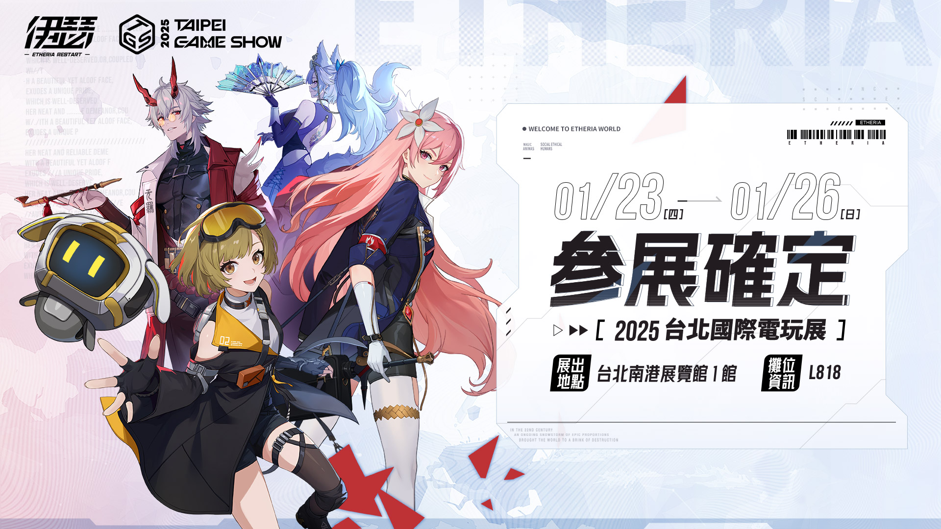 《伊瑟》官方宣布將出展 2025 台北國際電玩展,2025 年 1 月 23 日至 2025 年 1 月 26 日將於台北南港展覽館 1 館與超鏈者們見面,本次展場以「熔斷禁區」為設計主題,還原遊戲內氣氛,並釋出多項趣味關卡及舞台活動供超鏈者體驗,蒞臨現場完成任務不僅可帶走限量周邊,還可抽大獎 PS5 PRO。