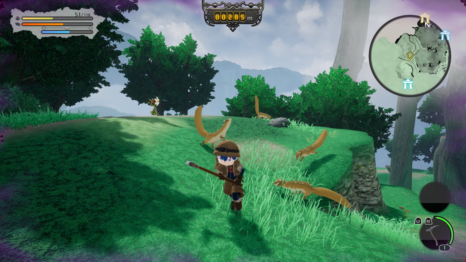 在深淵進行探窟時,除了上述 3 項數值之外,還必須留意相當多種要素,諸如周遭環境、主角的健康狀態、糧食庫存、道具耐久度、行李重量等等。玩家必須小心關注這些要素,審慎評估是否該繼續探窟?還是該折返回地表?或者是取捨該帶何種物品回去等等,慎重行事。