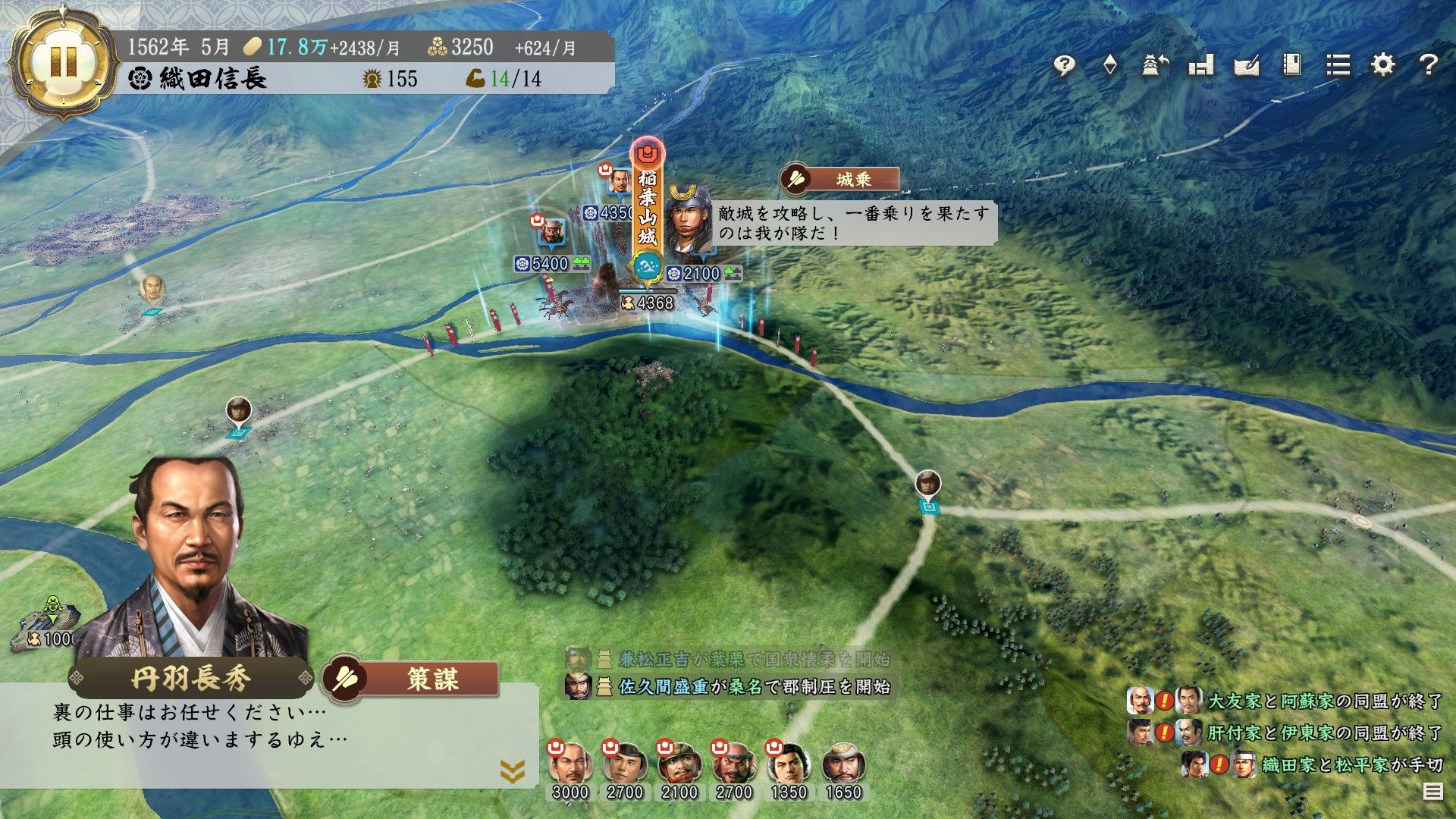在本作中,玩家可以對下屬的城主下達準備攻陷敵方據點的指令,當城主所在的據點接獲命令後,便會開始整飭軍備,整飭完畢後以臨戰狀態出陣的部隊能力將會提升。
