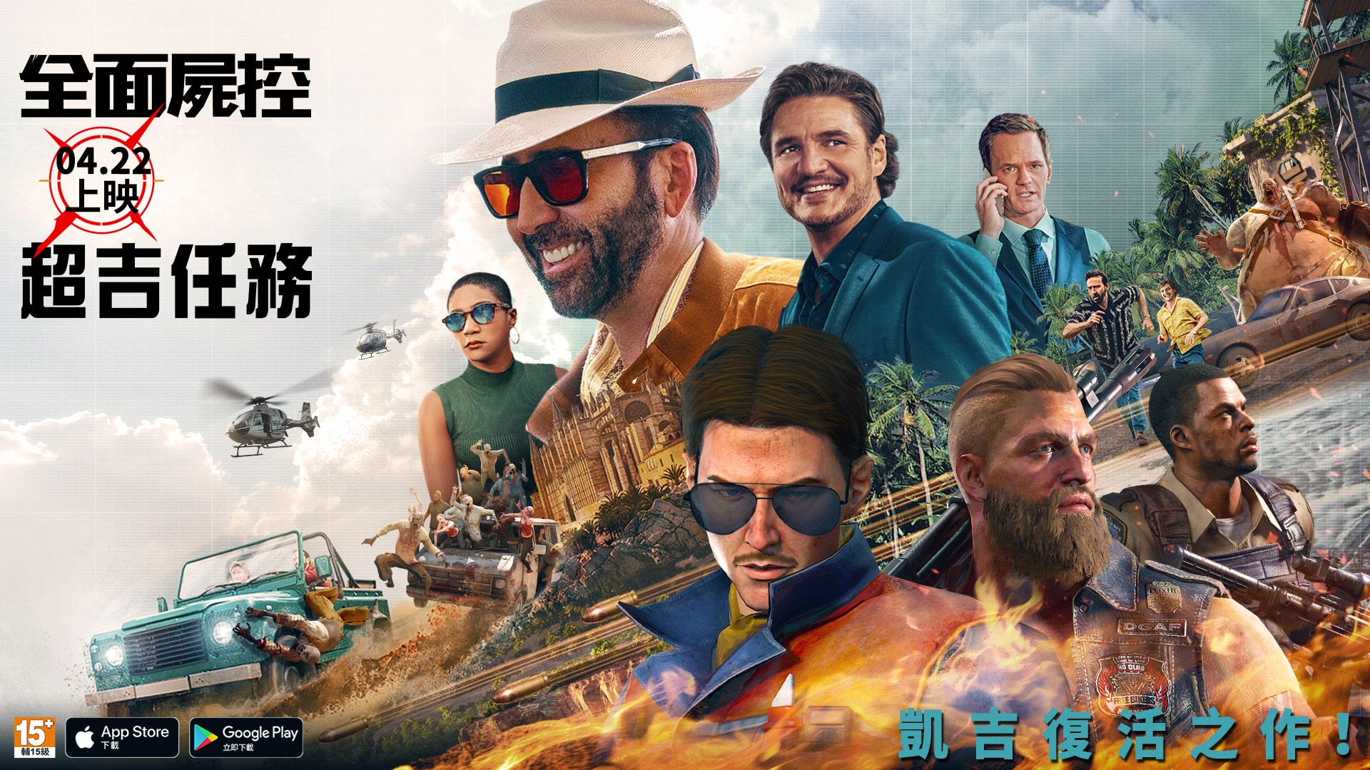 與著名影帝「尼可拉斯凱吉」所主演的全新動作冒險電影《超吉任務》展開的合作。這一次「尼可拉斯凱吉」所扮演的將會是現實中的自己,在拯救世界的任務中,原本的螢幕英雄也會變成豬隊友?在官方舉辦的社群活動中,末日夥伴不僅有可愛的貓貓和七吉八吉,也還會有「尼可拉斯凱吉」這位神仙隊友。