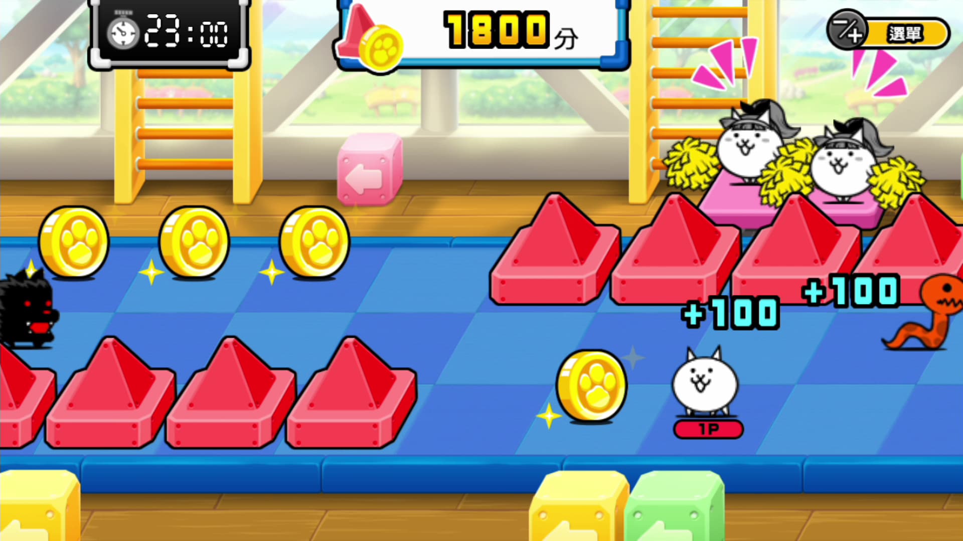 ④ 貓咪跑跳碰︰操作奔跑的貓咪並避開障礙物,獲得越多金幣則分數越高。請注意撞到障礙物或敵人會停止動作一段時間。