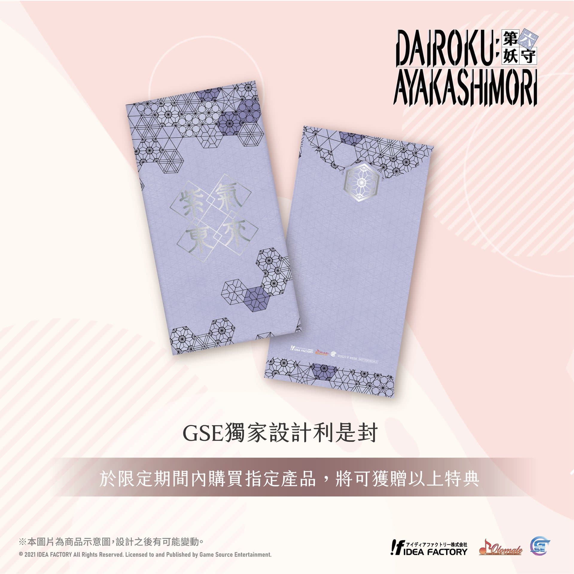 禮包內容物包括了以《冷然之天秤:帝都幻惑綺譚》、《Cupid Parasite 共生邱比特》、《第六妖守 Dairoku》、《奧林匹亞的晚宴》、《幻奏咖啡廳 Enchante》及《虔誠之花的晚鐘 ricordo》,六款 GS E與「Idea Factory」旗下品牌「Otomate」合作發行的亞洲繁體中文版乙女遊戲為主題的特色贈品。根據各遊戲的主題特色設計,外觀簡單大方,是十分實用的慶年用品。