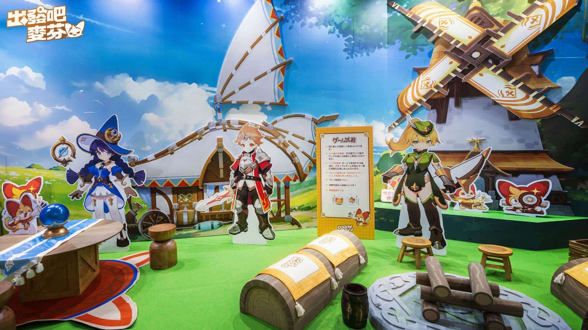 《出發吧麥芬》參展東京電玩展,除了麥芬親自到現場歡迎冒險家,日本寫真偶像「伊織萌」也化身二轉學者與冒險家相見。展會設計重現了營地的各種擺飾,包含莉莉可「占卜桌」、陪冒險家上山下海的「露營車」、營火旁的「雙人板凳」等最熟悉的佈景都是細節滿滿,展會現場也準備了豐富的麥芬周邊跟互動趣味小活動,現場冒險家均表示非常期待遊戲於日本正式上線,官方也表示期待日本冒險家們能接棒各區域的冒險之魂,持續往新的世界邁進。