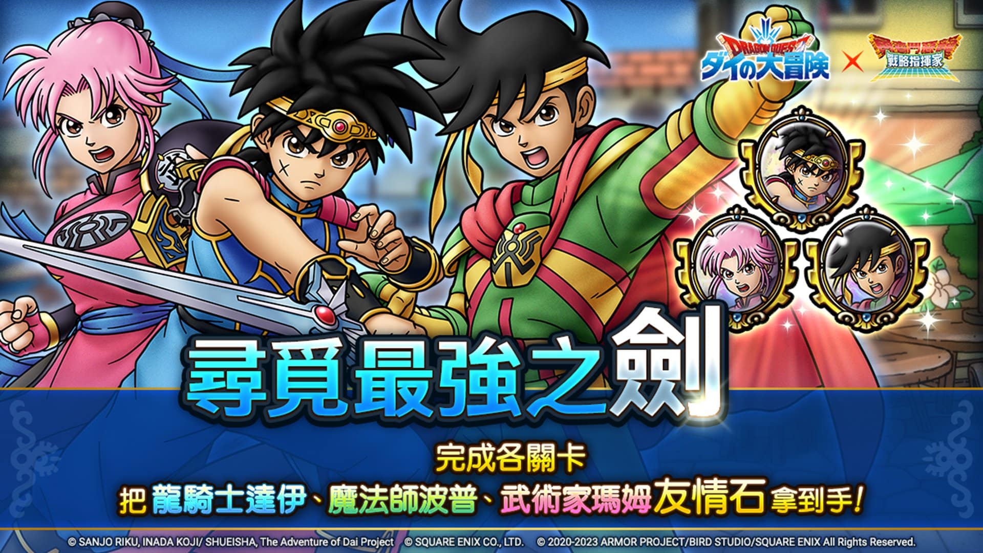 由 SQUARE ENIX 直營,《勇者鬥惡龍》系列手機遊戲《勇者鬥惡龍 戰略指揮家》國際版將展開《勇者鬥惡龍 達伊的大冒險》第 2 次合作活動,玩家將再次探索《勇者鬥惡龍 達伊的大冒險》世界,並與「龍騎士達伊」、「魔法師波普」與「武術家瑪姆」一行人重逢,繼續體驗原創故事。