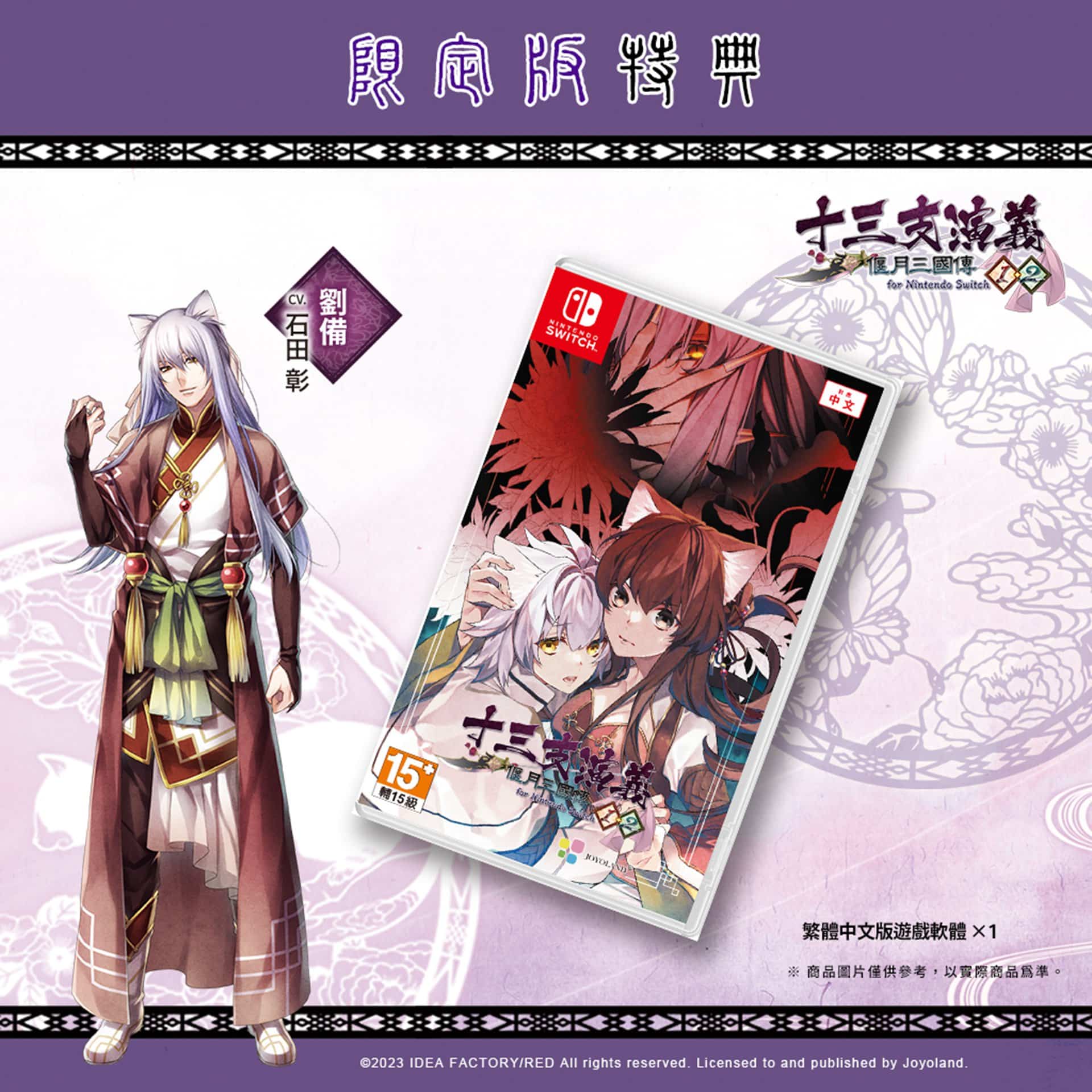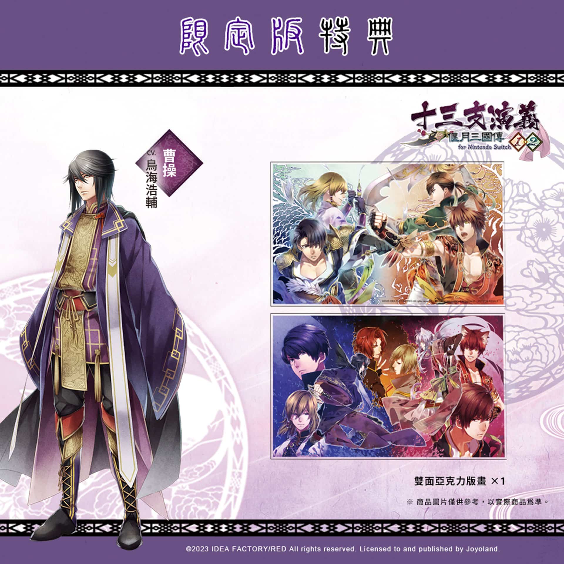 發行商 JOYOLAND 宣布,Idea Factory 旗下乙女遊戲品牌「Otomate」乙女作品女性向戀愛 ADV《十三支演義 偃月三國傳 1・2 for Nintendo Switch》NS 中文版將在 2023 年 12 月 28 日於亞洲區發售。並公開中文版獨家初回特典、限定版資訊,本次亞洲中文版獨家首發特典為 B3 大尺寸布海報一張。