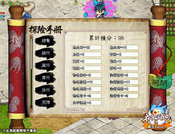 凡是完成上述州郡地圖擊倒 NPC 的任務都能獲得相對應的積分,持續累積積分就能逐步增進角色自身不同的能力加成,若按部就班將各大地圖的探險手冊任務一一攻略完成,對於角色本身的屬性成長將會有不小助益。
