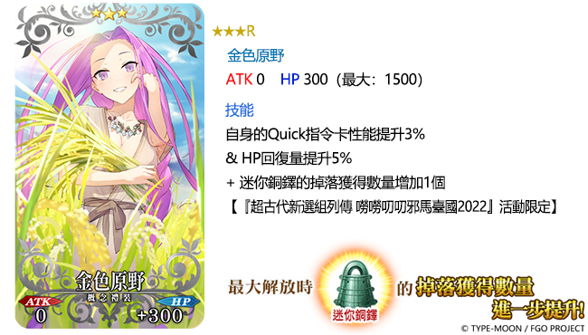 手遊 Fate/Grand Order《命運 冠位指定》繁中版自 7 月 7 日起,舉辦限時活動「超古代新選組列傳 嘮嘮叨叨邪馬臺國 2022」,謎之埴輪發出了詭異光芒,將眾人帶往遙遠時空的彼方,由傳說中的女王「卑彌呼」統治的邪馬臺國。此外,「狩獵任務 第 9 彈」及「嘮嘮叨叨 PICK UP 召喚(每日變更)」等兩項活動搶先開放,邀請御主們上線參與。