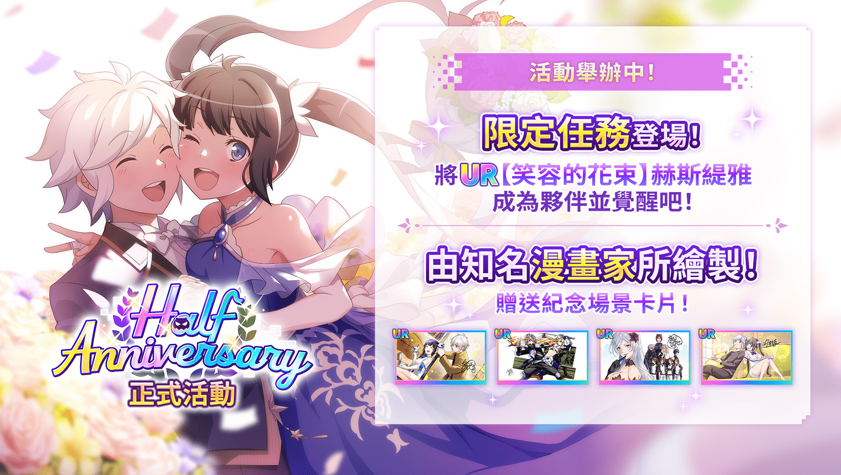 日商艾鳴網路遊戲股份有限公司宣佈,戰鬥動作 RPG《在地下城尋求邂逅是否搞錯了什麼:戰鬥編年史》為紀念半週年,舉行 5 大優惠活動。除了過關活動後可獲得限定 UR 赫斯緹雅的任務、能獲得可兌換插圖畫家繪製的場景卡片的交換票券和魔寶石等物品的登入獎勵之外,還會推出能獲得特製周邊商品的贈禮活動等各種遊戲內外的活動。