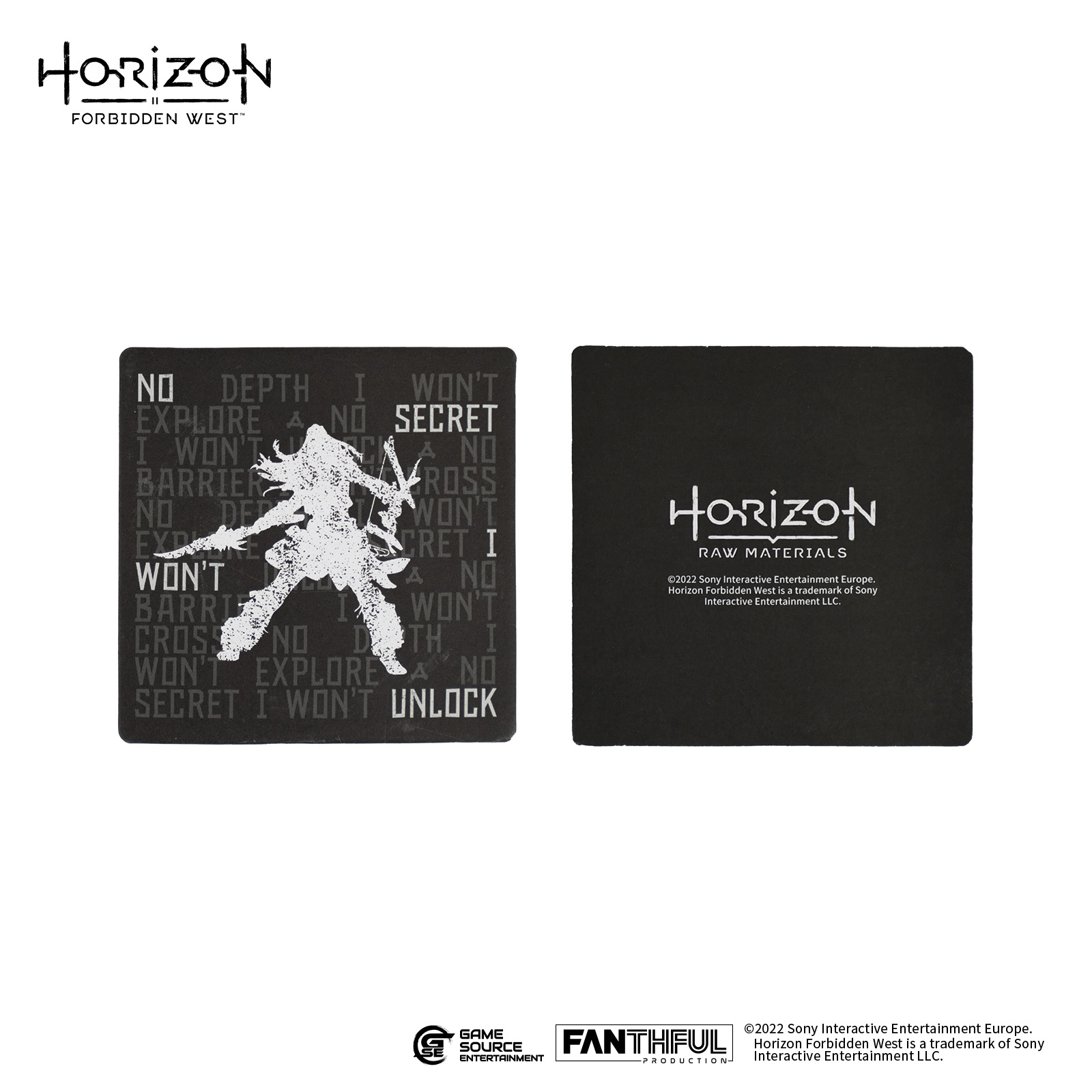 FANTHFUL 為《地平線 西域禁地》帶來 9 款周邊產品,以極具風格化的主要視覺圖為設計開發元素,設計靈感源自 Aloy 的服裝配飾及道具,輔以主人公,諾拉族勇者的象徵、遊戲內重要的視覺元素包括 FOCUS 圖案等。貼合遊戲風格的設計及元素運用,使得本系列周邊如同遊戲原作一樣,充滿宏偉壯麗原始感與未知神秘機械感的激烈碰撞。