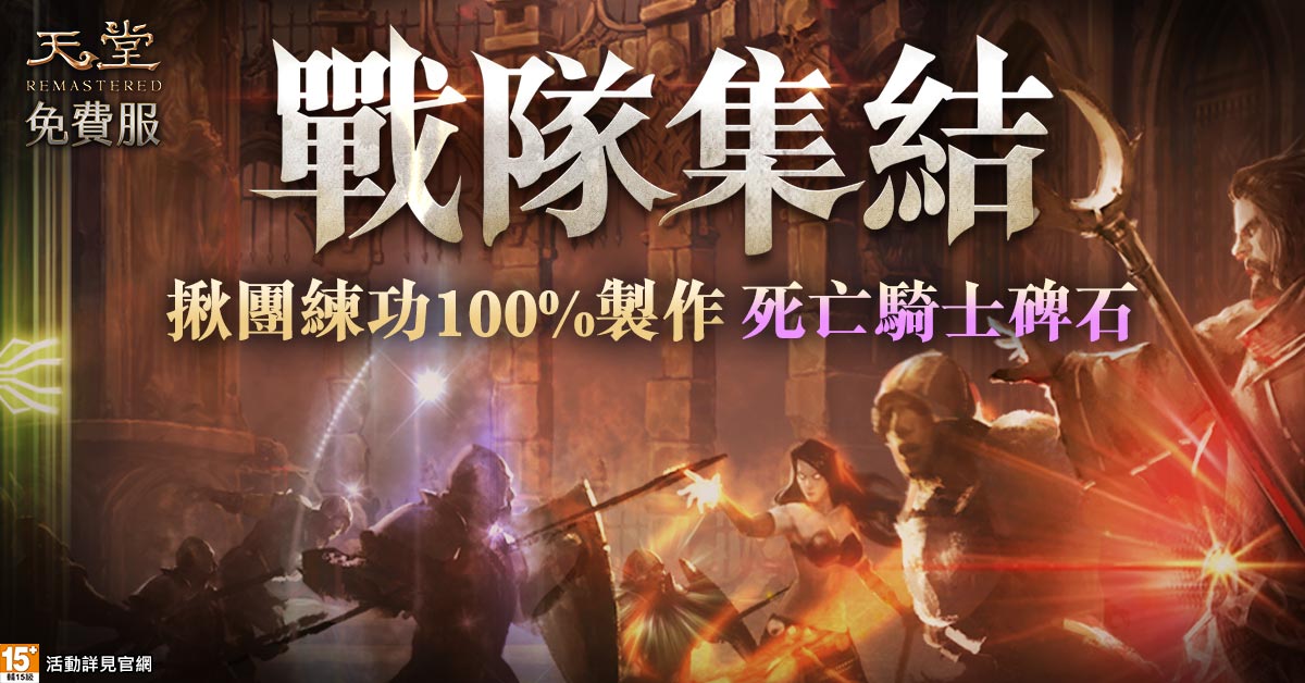 全身上下的主要裝備,甚至是經典變身都能在全新伺服器中免費取得,開服活動「戰隊集結」亦將同步開跑到 10 月 2 日,有機會獲得「純白萬能藥 x1-100」、「300% 神力藥水 x3」、「魔法娃娃 3 日體驗包 x1」,並蒐集素材有機會製成「滅●死亡騎士碑石」。
