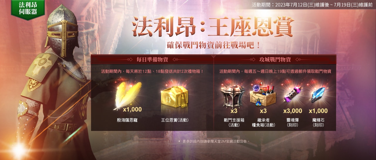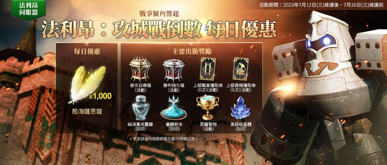 NCSOFT 旗下手遊《天堂 2M》更新,現有伺服器新增「狂氣瑪魯克城寨」及全新神話壺精;法利昂伺服器展開攻城戰並新增亞丁地區擴張。