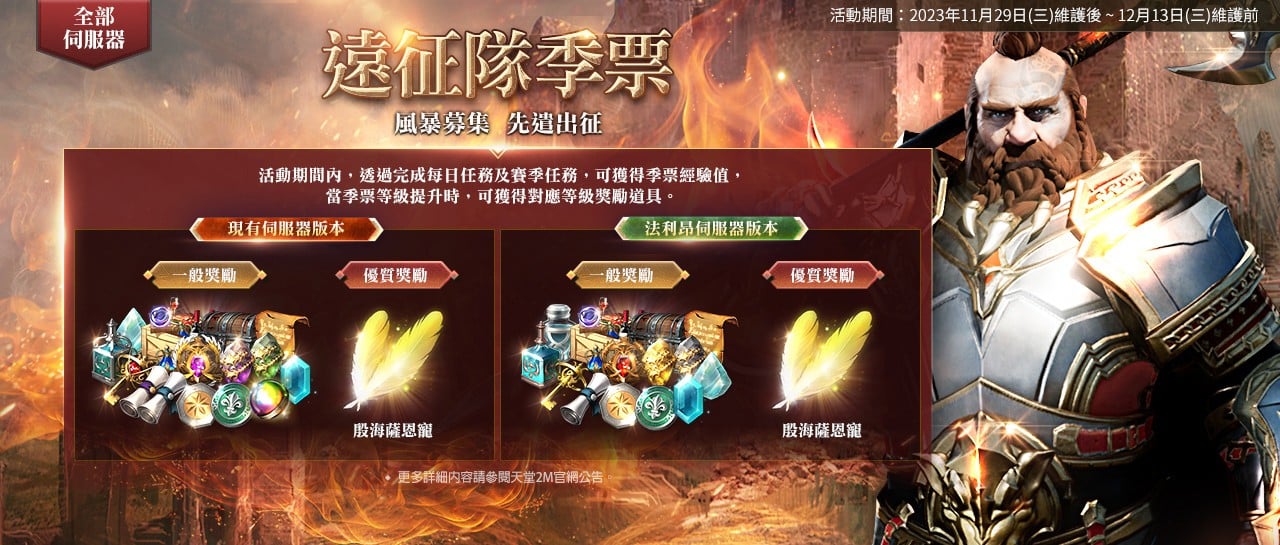 現有伺服器其他更新內容包含:新增職業突破 & 連結系統、新增裝備「勇猛面甲」。法利昂伺服器則是新增世界副本「古代公墓」,入場時間為每週日晚間 21:50 ~ 22:00。