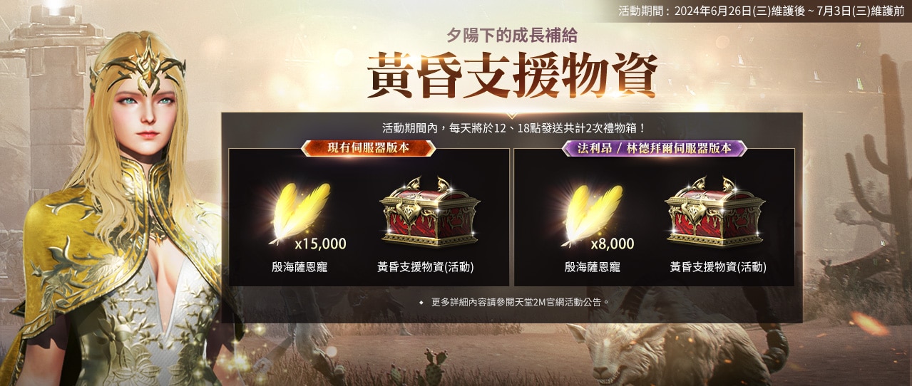 為了與繼承者們更直接的溝通,《天堂 2M》將在 7 月 5 日晚上 19:00 進行【REAL LIVE IN TAIWAN】7 月更新情報公開直播;除了公開更詳細的改版內容外,還有直播特別禮物「限時序號」以及多種互動遊戲,將贈送獎勵。