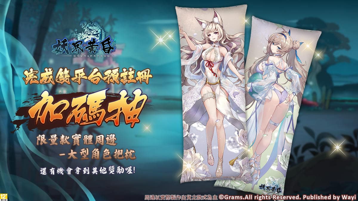 RPG 手遊《妖界黃昏 妖怪皇帝與終焉的夜叉姬》中文版即日起開放雙平台預註冊。為了慶祝這一重要時刻,官方同步推出了多項活動,包括「完成預註冊:送大抱枕」實體周邊抽獎活動以及「臉書粉絲抽獎」活動。只需至活動網頁,完成雙平台預註冊,即有機會獲得限量款的實體周邊「大型角色抱枕」(40cm X 100cm),並免費運送到家。
