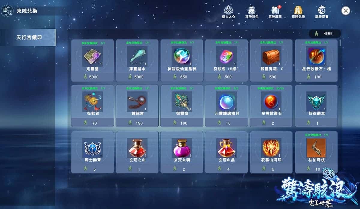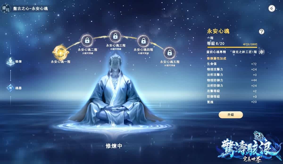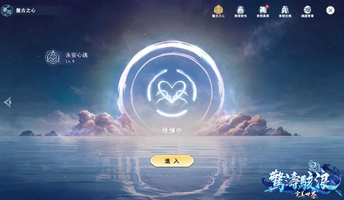 全新「盤古之心」系統是本次新改版的重要玩法之一,玩家們抵達東陸後,透過完成主線任務、自由探索可以獲得「魂識」提高心魂等級。東陸專屬創世賜福任務共分為五階,玩家可依心魂等級挑戰相對應任務,完成創世賜福任務可獲得等階裝備「魂器」;魂器會被賦予隨機屬性,更高階的魂器有更強的效果,若想改變魂器屬性或類型,可以透過魂器輪迴,消耗多個同階魂器,得到一個同階的全新魂器。